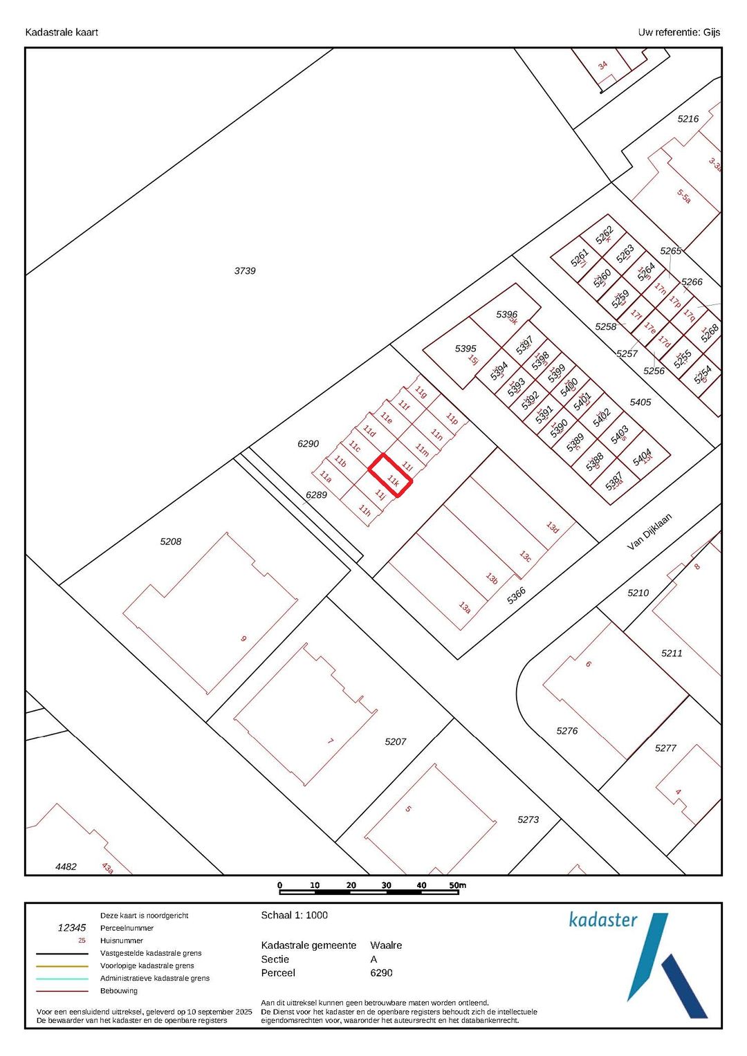 Kadastrale gegevens Van Dijklaan 11K te Waalre: