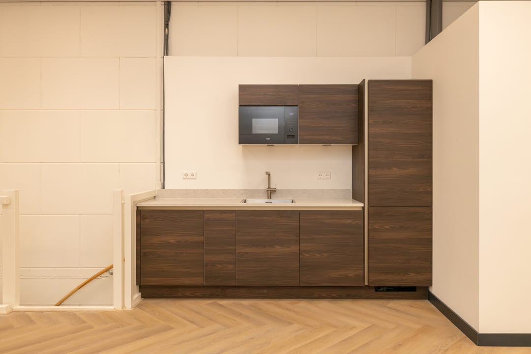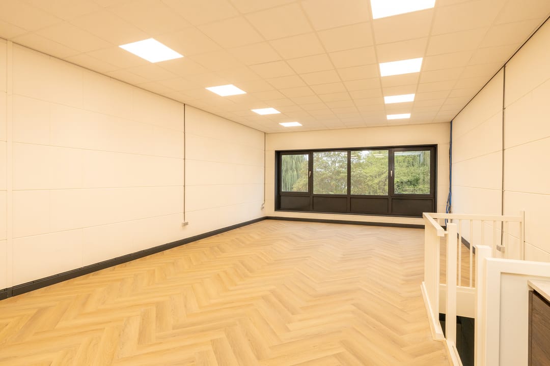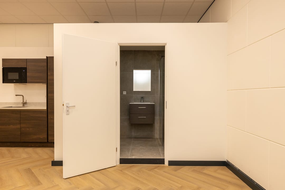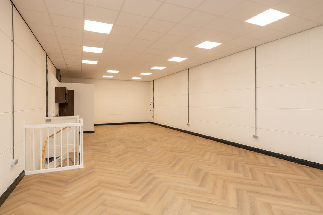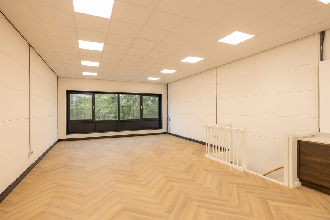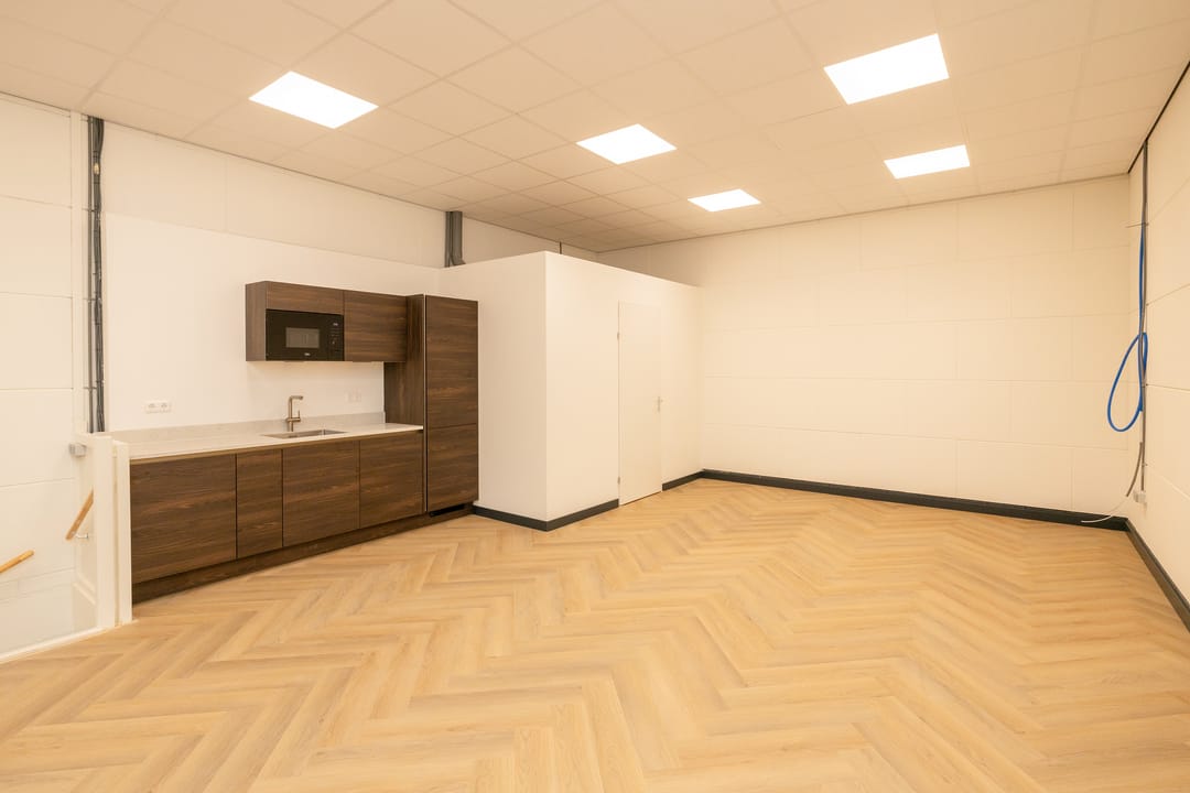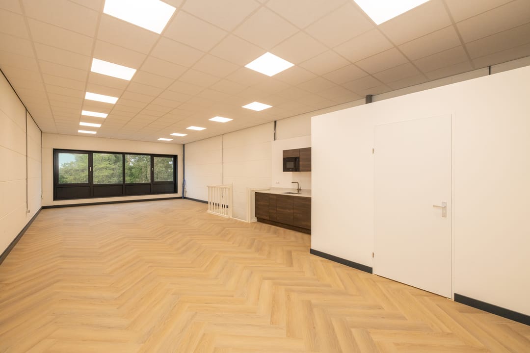 Deze kantoorruimte is hoogwaardig afgewerkt met een visgraat pvc-vloer, systeemplafond en LED-verlichting. Dankzij de aanwezige grote raampartij profiteert het kantoor van veel natuurlijke lichtinval. Tevens is er een pantry met diverse apparatuur en een geheel betegelde toiletruimte met douche en wasmachine aansluiting aanwezig. De gehele ruimte wordt verwarmd middels airco-verwarmingsunits.