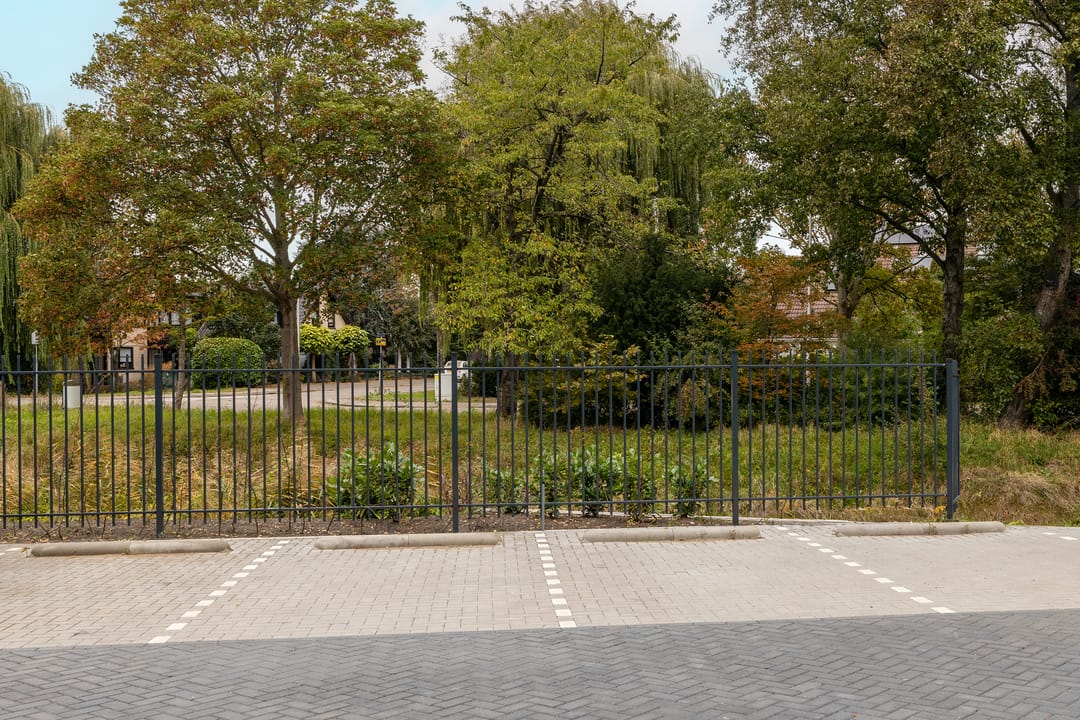 Bij het pand behoren twee eigen parkeerplaatsen, gesitueerd op het afsluitbare buitenterrein. In de tegenover gelegen woonwijk is eveneens openbare parkeergelegenheid aanwezig.