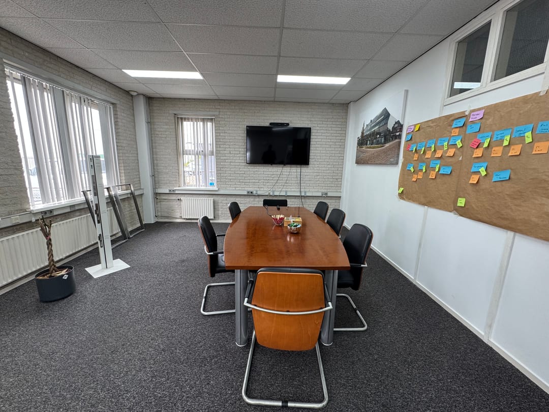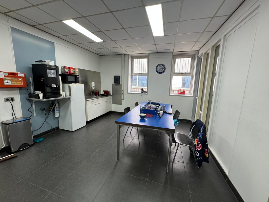 - Entree, kantoorruimte, kantine en sanitaire voorzieningen (ca. 244 m²)