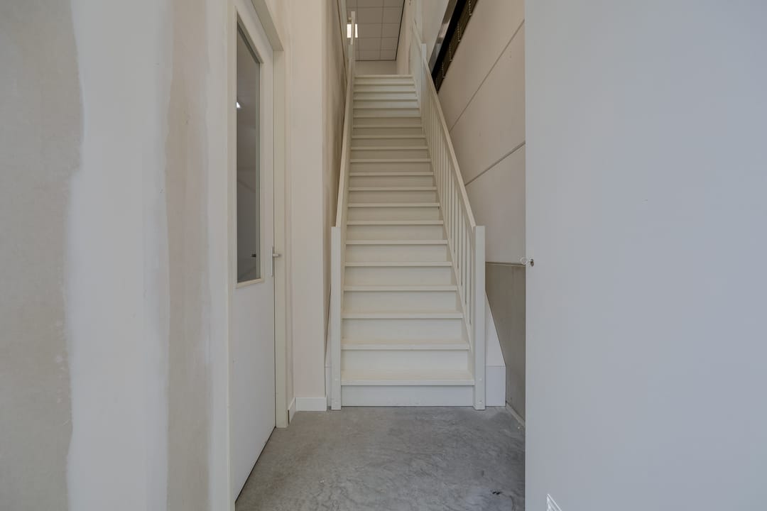 Via een vaste trap is de ruimte op de eerste verdieping bereikbaar. Deze ruimte is voorzien van te openen ramen, een strak afgewerkte systeemplafond met LED-verlichtingsarmaturen en is uitstekend te gebruiken als kantoorruimte. Tevens zijn de voorzieningen getroffen voor een pantry, is er een elektrisch ventilatiesysteem aanwezig en zijn de binnenwanden volledig geïsoleerd.