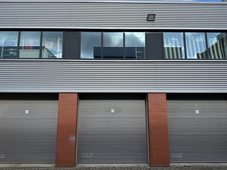 Entree naar de bedrijfsruimte middels de elektrisch bedienbare overheaddeur of de loopdeur in de overheaddeur. Aan de achterzijde van de bedrijfsunit bevind zich de houten trap die toegang biedt tot de opslagruimte op de 1e verdieping.