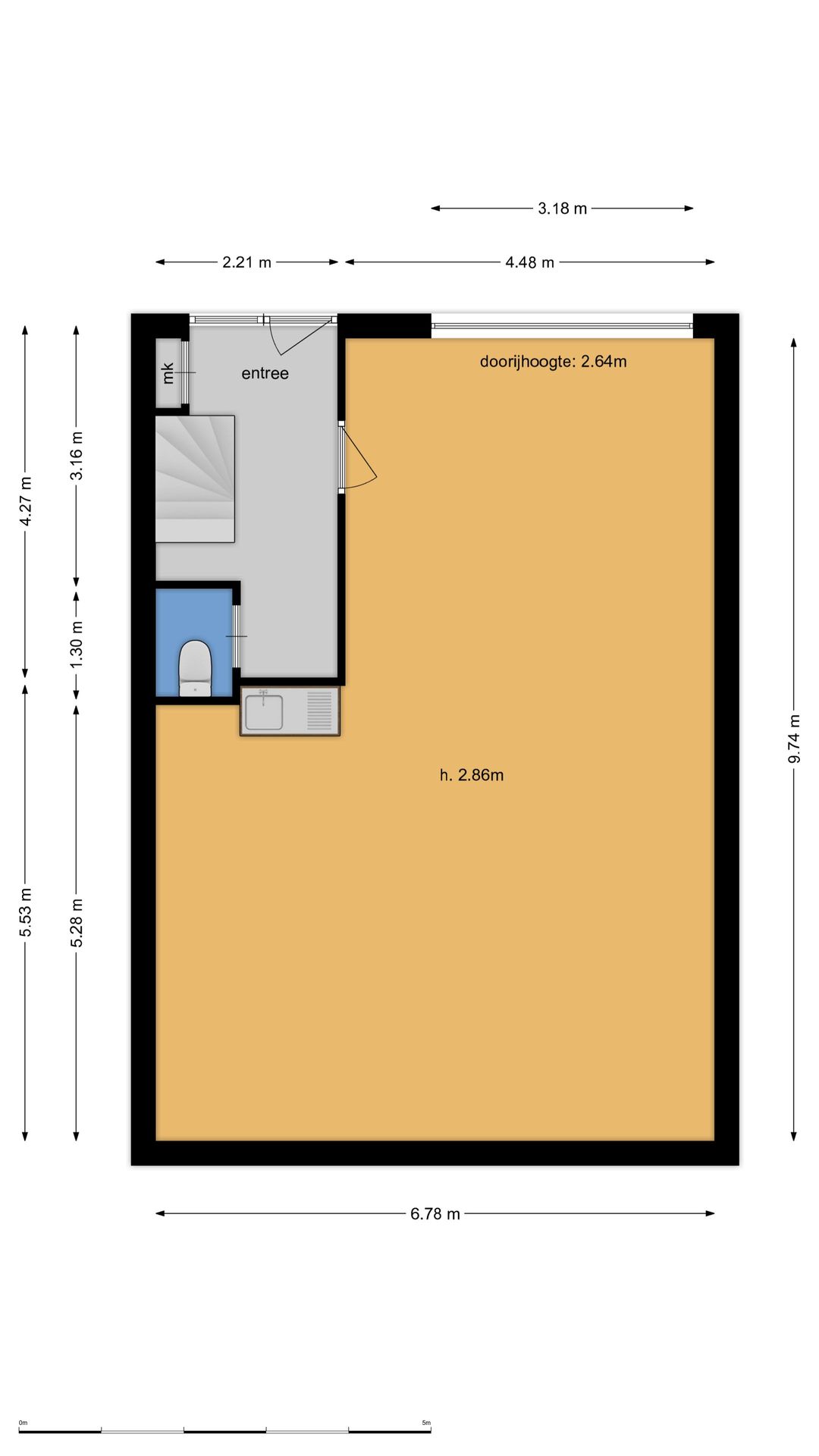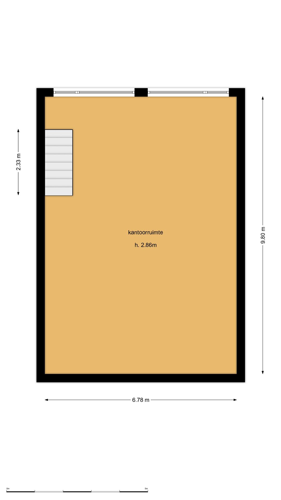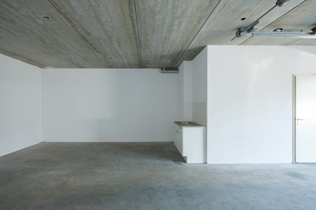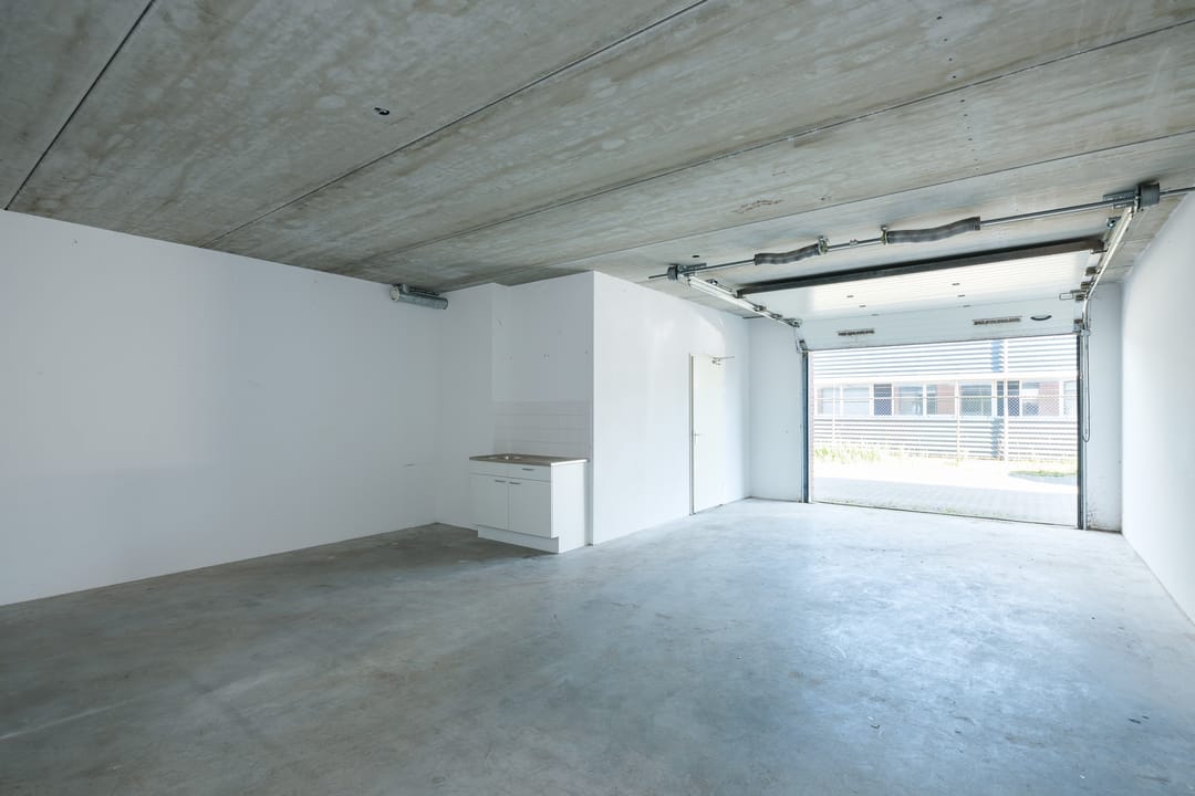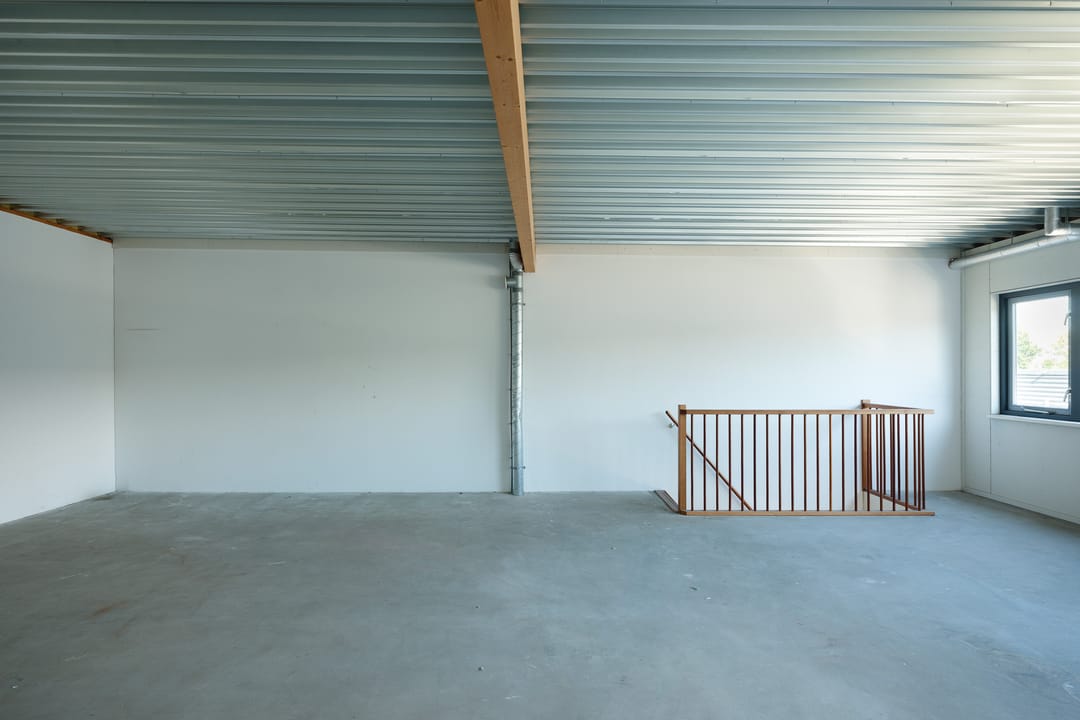 On the ground floor is the entrance and a reception room/hall, the meter cupboard and the space for a toilet. The business space can be entered through a connecting door. Through the manually operated overhead door there is a possibility for loading and unloading goods. The business space has a clear height of 2.86 meters and the passage for the overhead door is 3.18 x 2.64 meters.