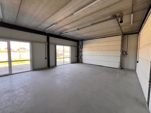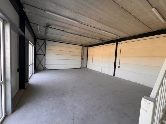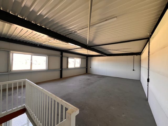 - Overhead doors, concrete floor, toilet, pantry and windows can be opened