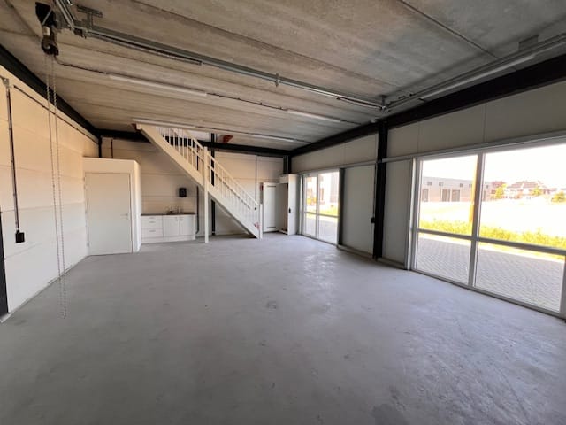 Op de begane grond heeft u circa 66 m² bedrijfsruimte (met toilet en keukenblok) toegankelijk middels een eigen entreedeur aan de voorzijde en een elektrische overheaddeur aan de zijkant. Op de verdieping bevindt zich circa 63 m² aan kantoorruimte, deze ruimte is middels een vaste trap te bereiken en beschikt over veel lichtinval.