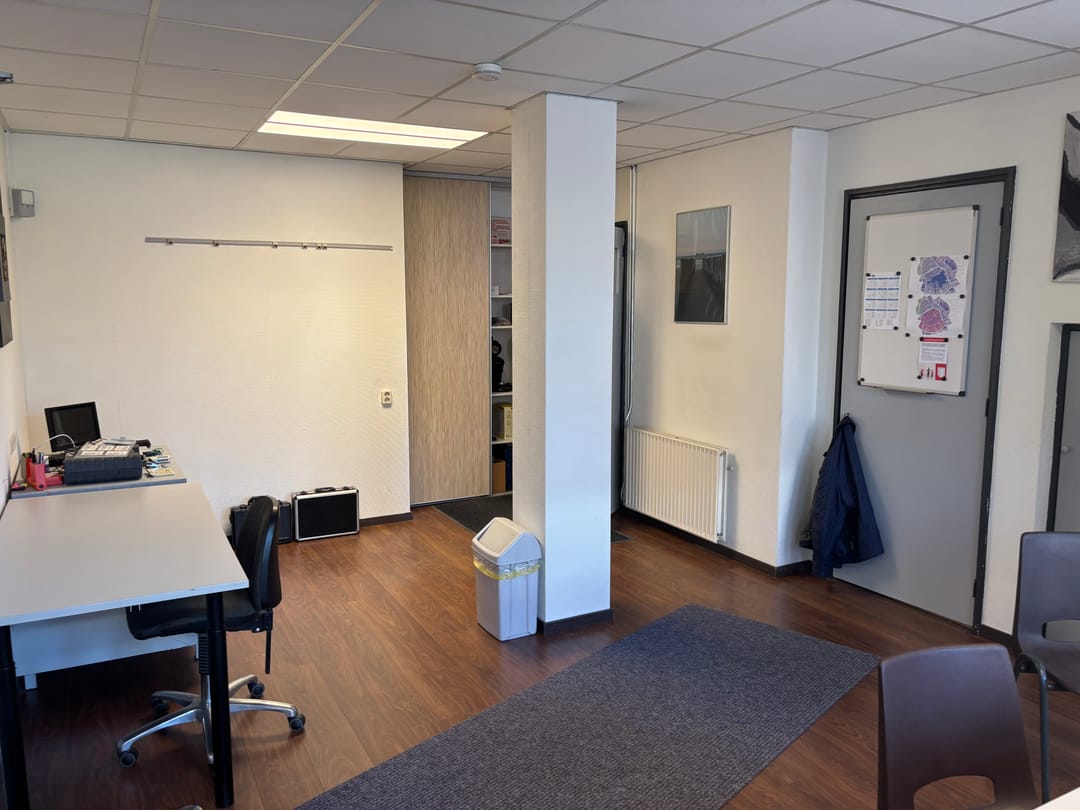 De bedrijfsruimte is voorzien van een betonvloer, pantry en toilet. De hoogte bedraagt circa 2,70 meter. Een dubbele deur geeft toegang tot de ruimte. Het kantoor van circa 30 m² v.v.o. wordt verwarmd middels radiatoren die zijn aangesloten op een cv ketel.