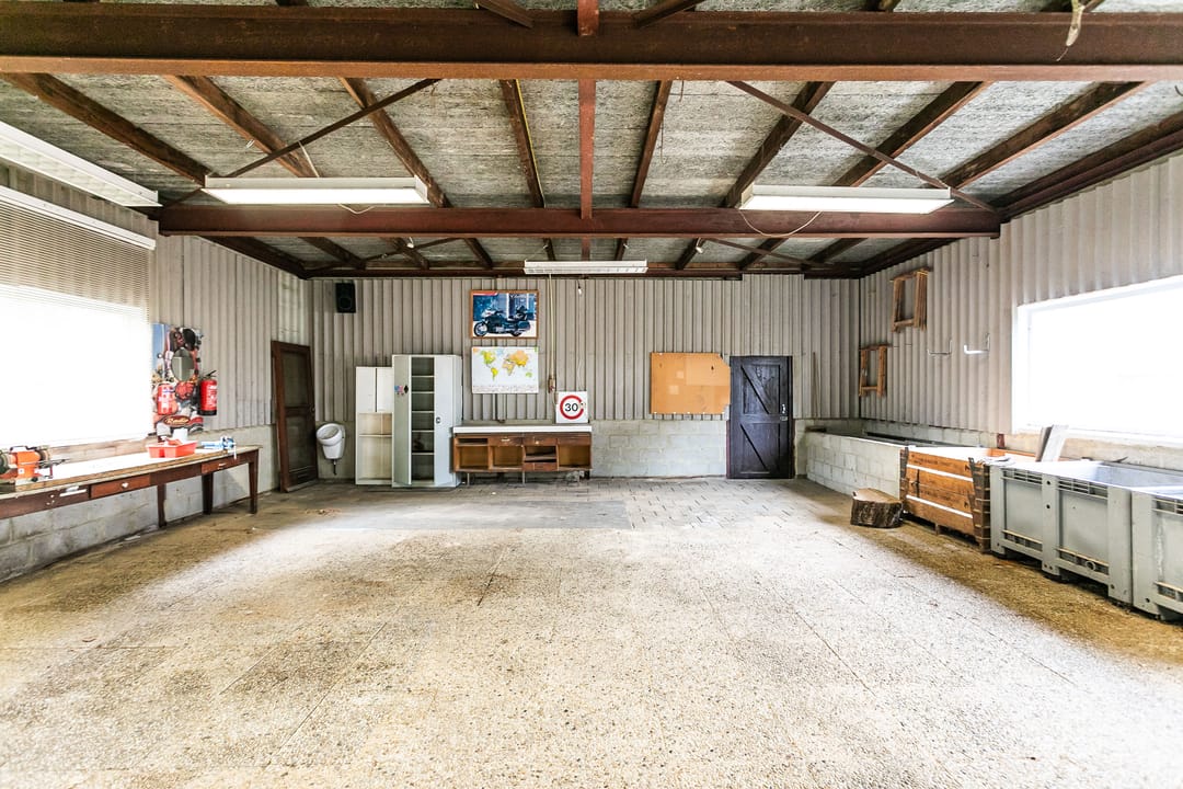 - ruime garage en grote loods met elektrische sectionaalpoort;