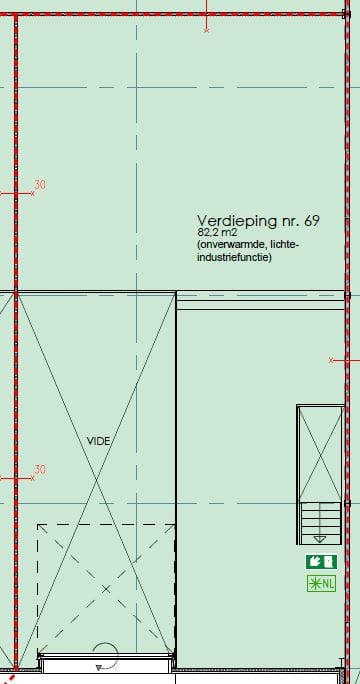 Begane grond : ca. 86 m2 VVO (5,75 m breed en 15 m diep)