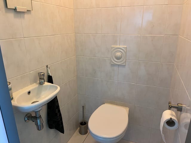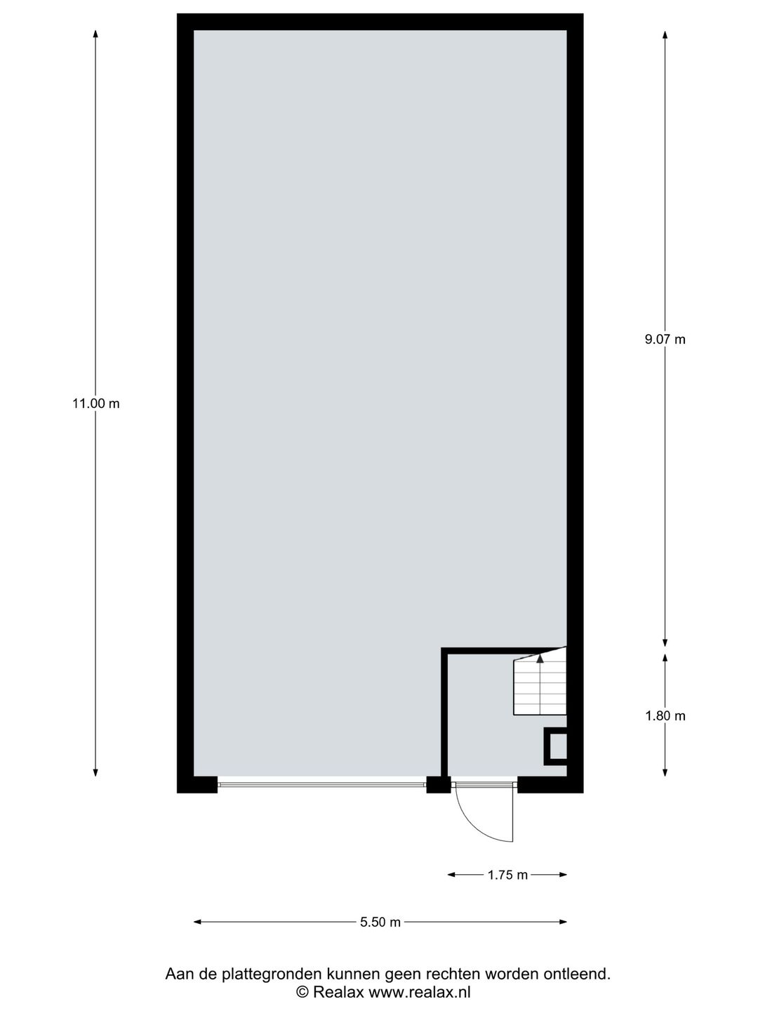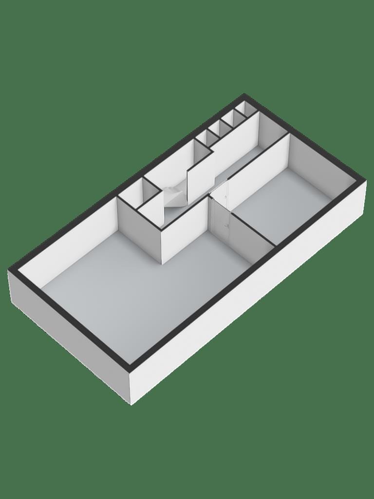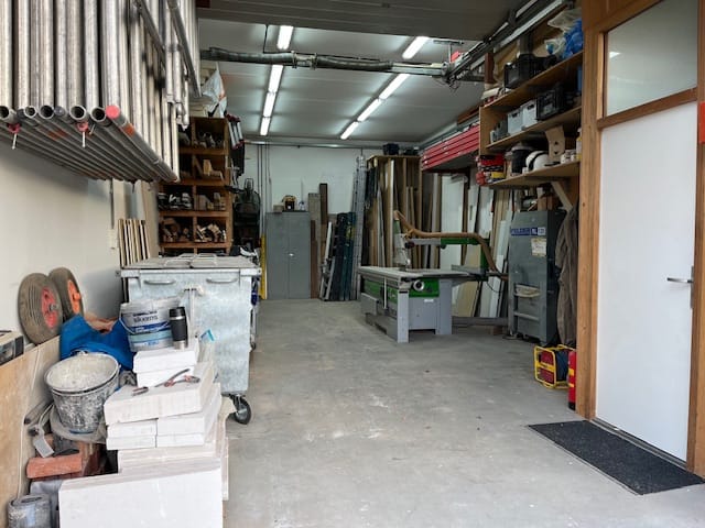 De begane grond van circa 60 m² is uitgevoerd als bedrijfsruimte en beschikt over een elektrische overheaddeur van ca. 3,30 m x 3,30 m, wat zorgt voor gemakkelijke toegang voor goederen en voertuigen. De vrije hoogte bedraagt ca. 3,75 meter. Een ideale plek voor opslag, werkplaats of kleinschalige productie.