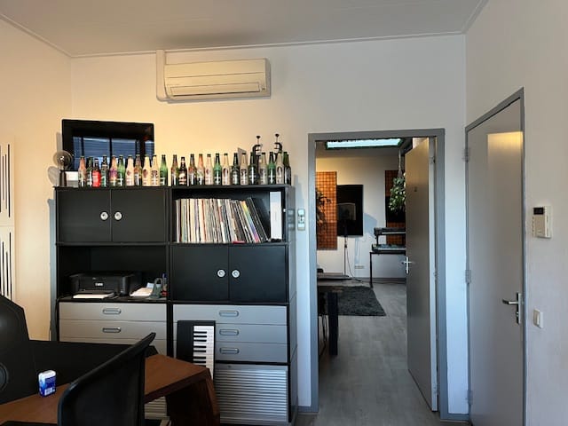 Op de eerste verdieping bevinden zich twee kantoorruimten van respectievelijk ca. 31 m² en 13 m², afgewerkt met een nette laminaatvloer. De verdieping is voorzien van een toilet en een pantry, en er is een airco-installatie aanwezig voor een aangenaam werkklimaat.