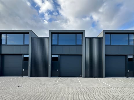 De gevels zijn voorzien van geïsoleerde sandwichpanelen met een moderne industriële uitstraling. De aluminium gevelelementen zijn standaard uitgevoerd met HR++ beglazing en zijn gemonteerd in wit gegronde houten stelkozijnen. Elke unit beschikt over een handbediende overheaddeur met geïntegreerde loopdeur.