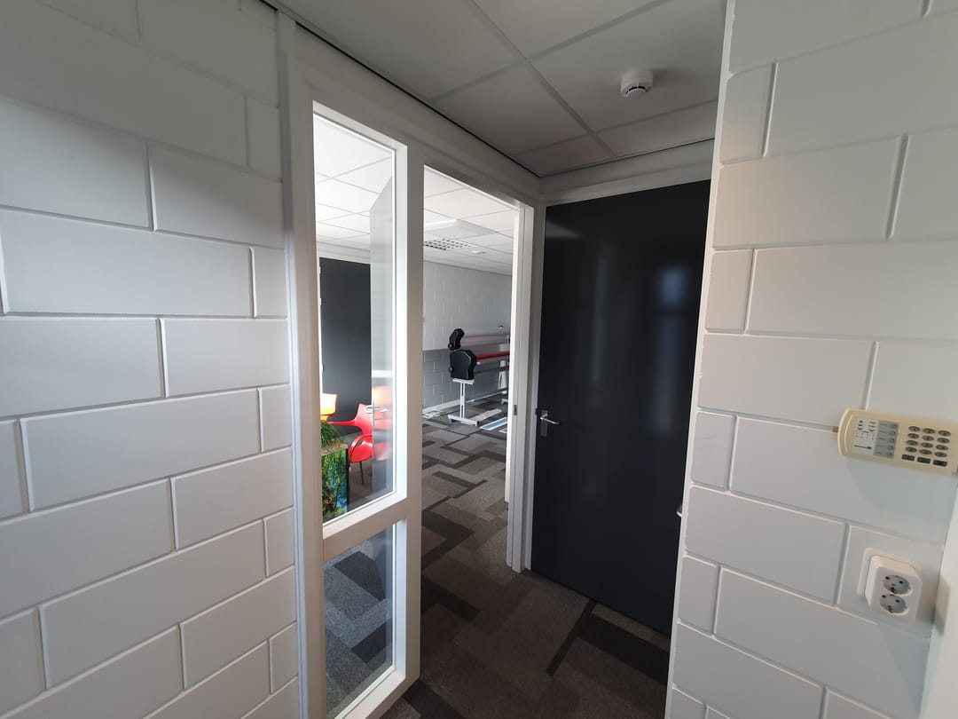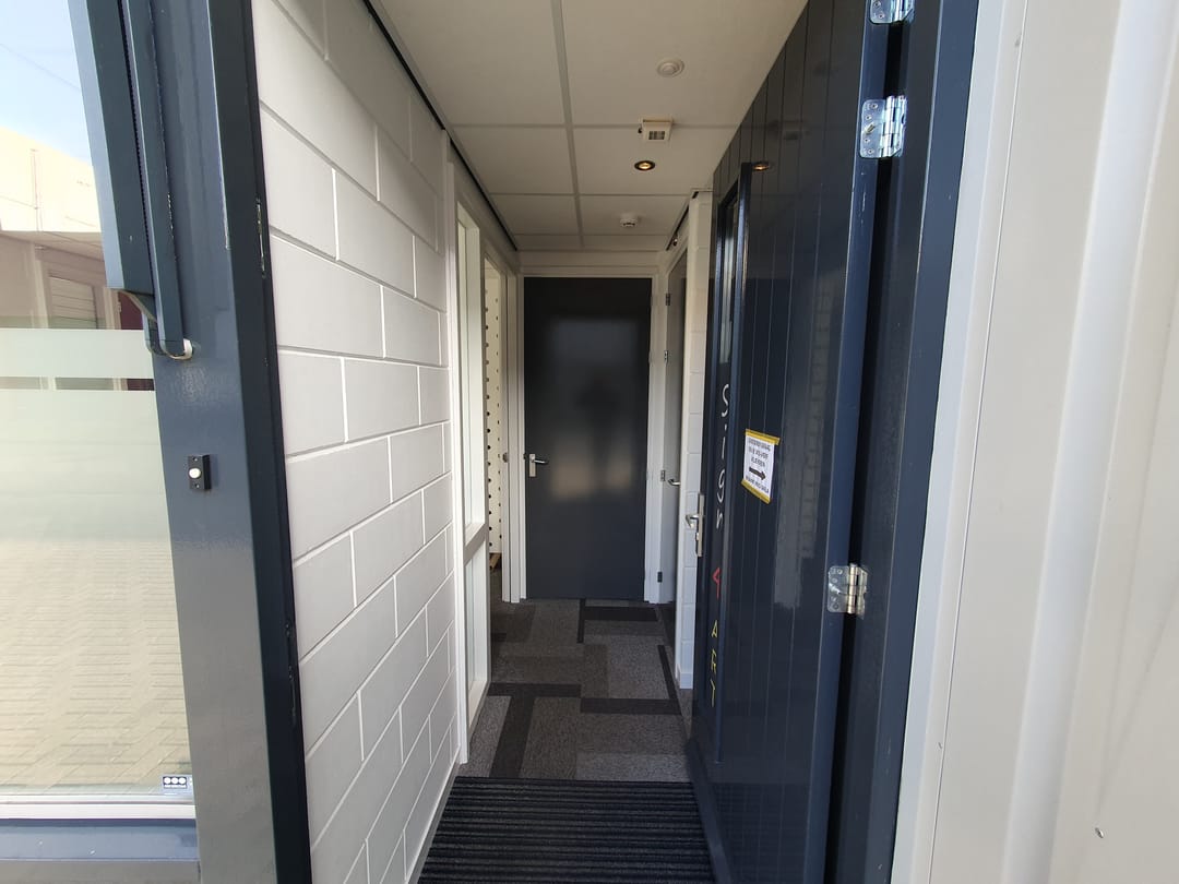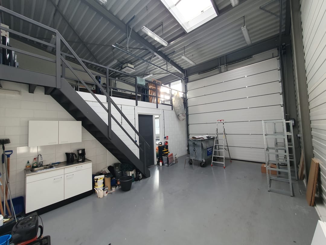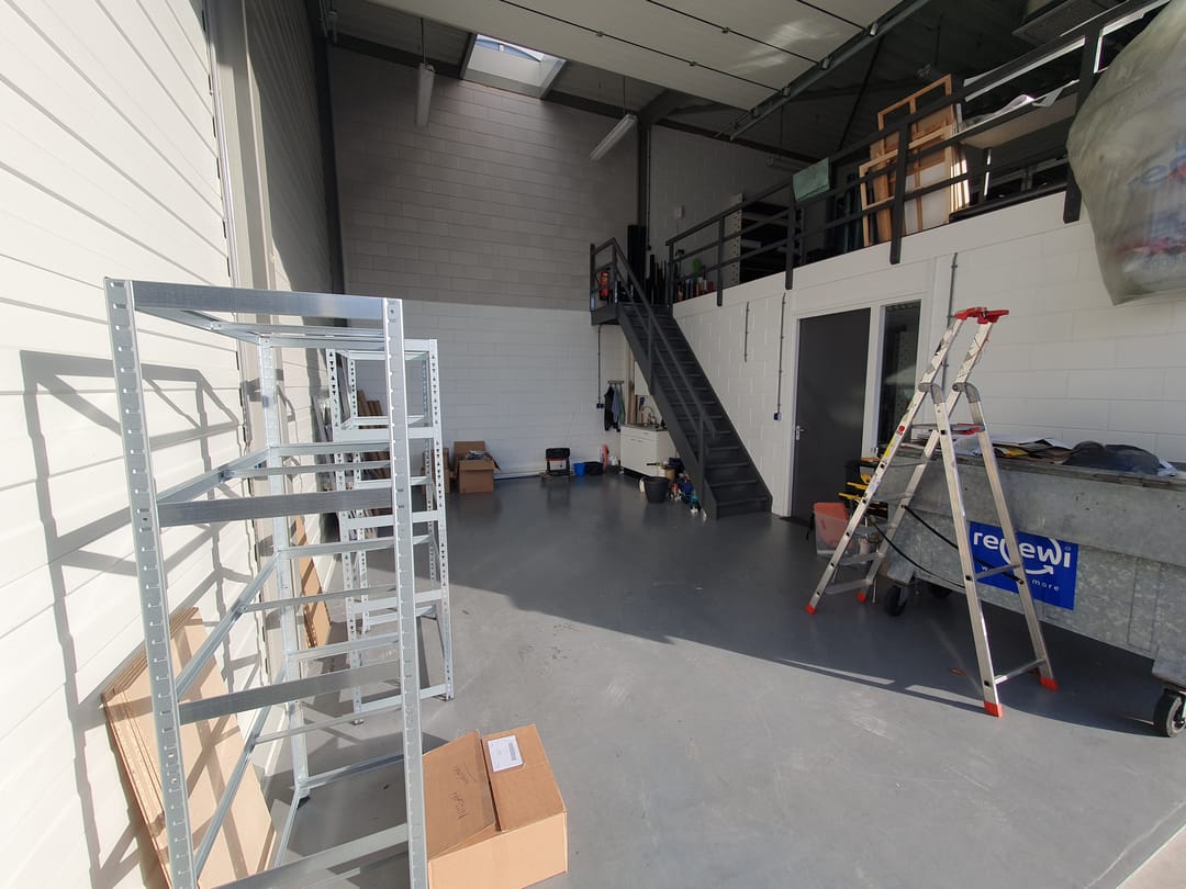 Entree, hal met meterkast en toiletruimte met wandcloset en fontein, Kantoorruimte voorzien van airconditioning en grote raampartij waardoor goede daglichttoetreding. Deze kantoorruimte kan eventueel opgedeeld worden met meerdere werkplekken. Ruime loods met overheaddeur en een netto hoogte van 5,7 meter. Achterin de loods is een pantry en een stalen trap naar de open verdieping die uitstekend geschikt is voor opslag maar ook montage en kantoorruimte behoort tot demogelijkheden.