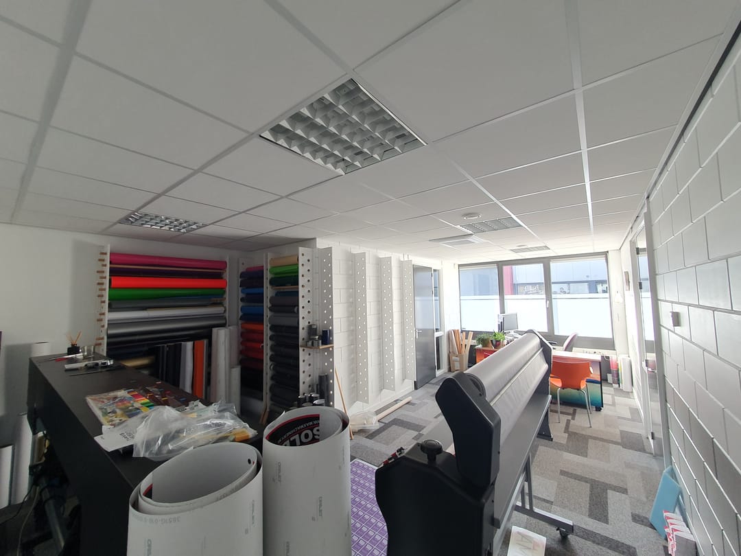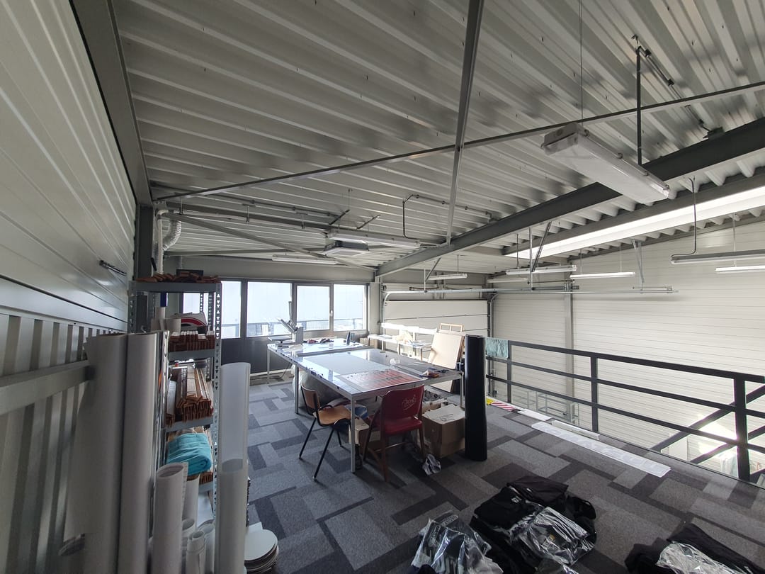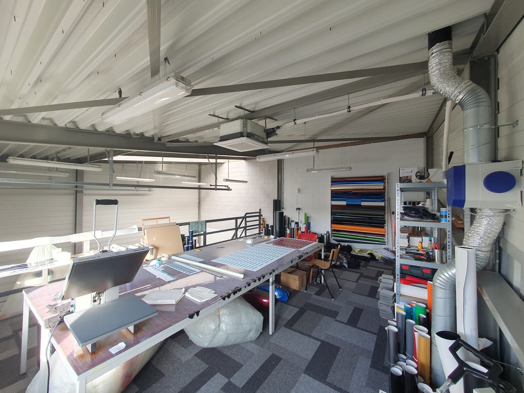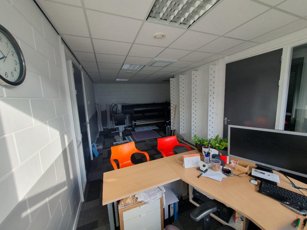 Entree, hal met meterkast en toiletruimte met wandcloset en fontein, Kantoorruimte voorzien van airconditioning en grote raampartij waardoor goede daglichttoetreding. Deze kantoorruimte kan eventueel opgedeeld worden met meerdere werkplekken. Ruime loods met overheaddeur en een netto hoogte van 5,7 meter. Achterin de loods is een pantry en een stalen trap naar de open verdieping die uitstekend geschikt is voor opslag maar ook montage en kantoorruimte behoort tot demogelijkheden.