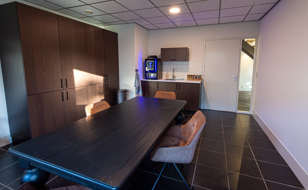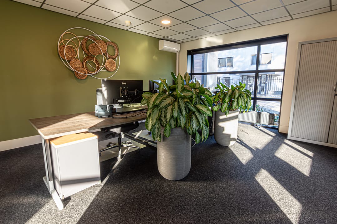 Kantoorruimte - Het kantoor is efficiënt en prettig ingedeeld en bestaat uit vier afzonderlijke ruimtes, waarvan één is ingericht als kantine/pantry. Hierdoor is er voldoende plek voor ontvangst, administratie, overleg en personeelsvoorzieningen. Verder beschikt de kantoorruimte over: