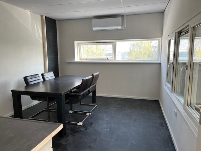 Het betreft hier een modern bedrijfsverzamelgebouw aan de rand van het bedrijventerrein met daarin een bedrijfsruimte van ca. 120 m² op de begane grond en een verdiepingsvloer van ca. 80 m² alsmede ca. 15 m² kantoor/kantine.
