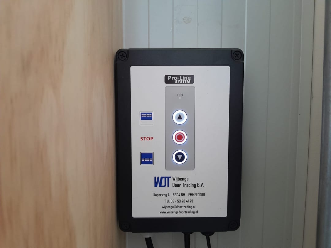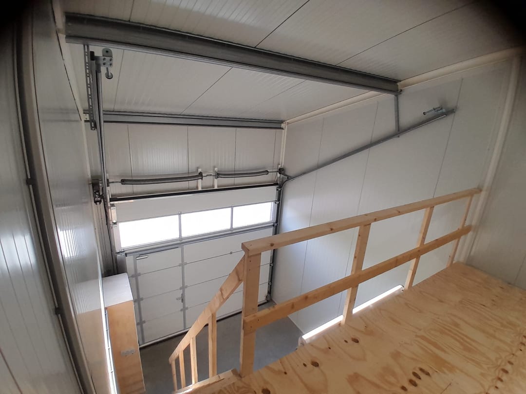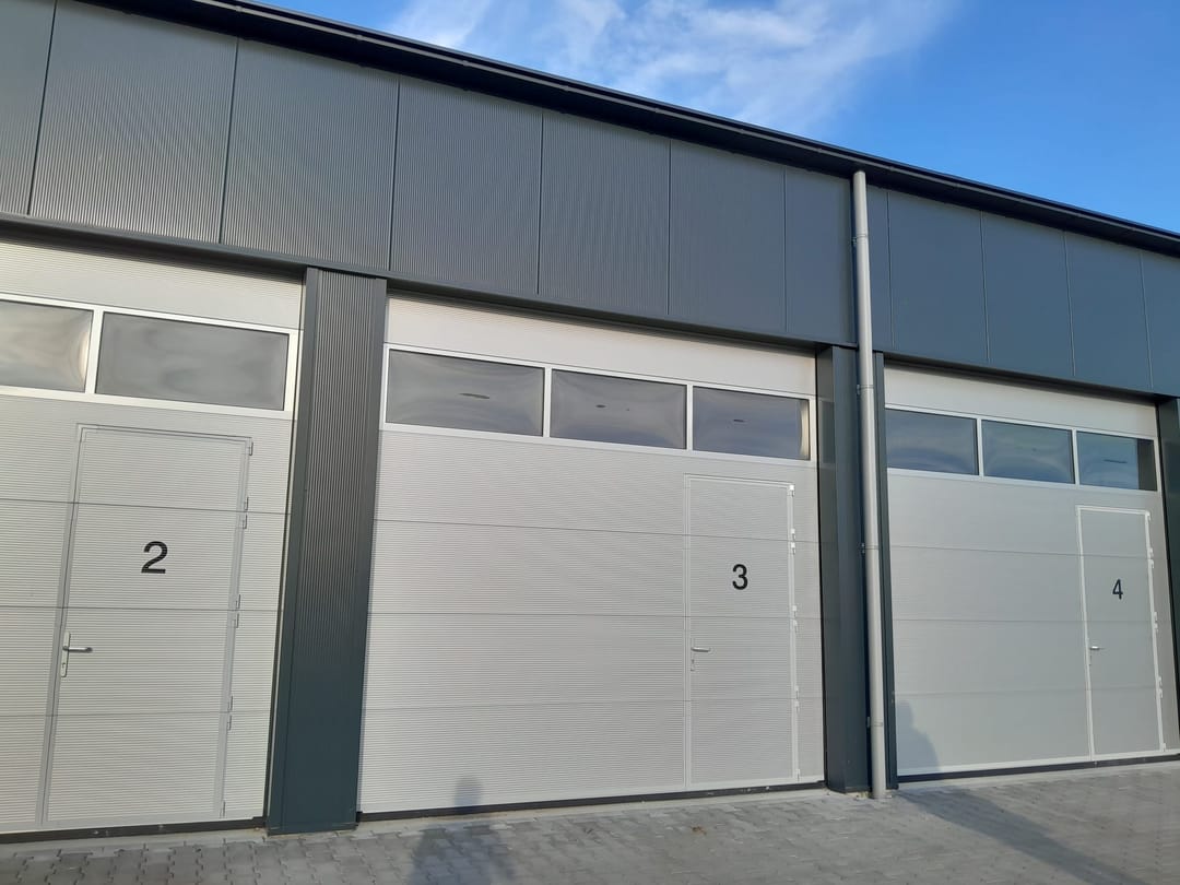 - Elektrische overheaddeur met loopdeur (3,65 m breed, 3,5 m hoog)