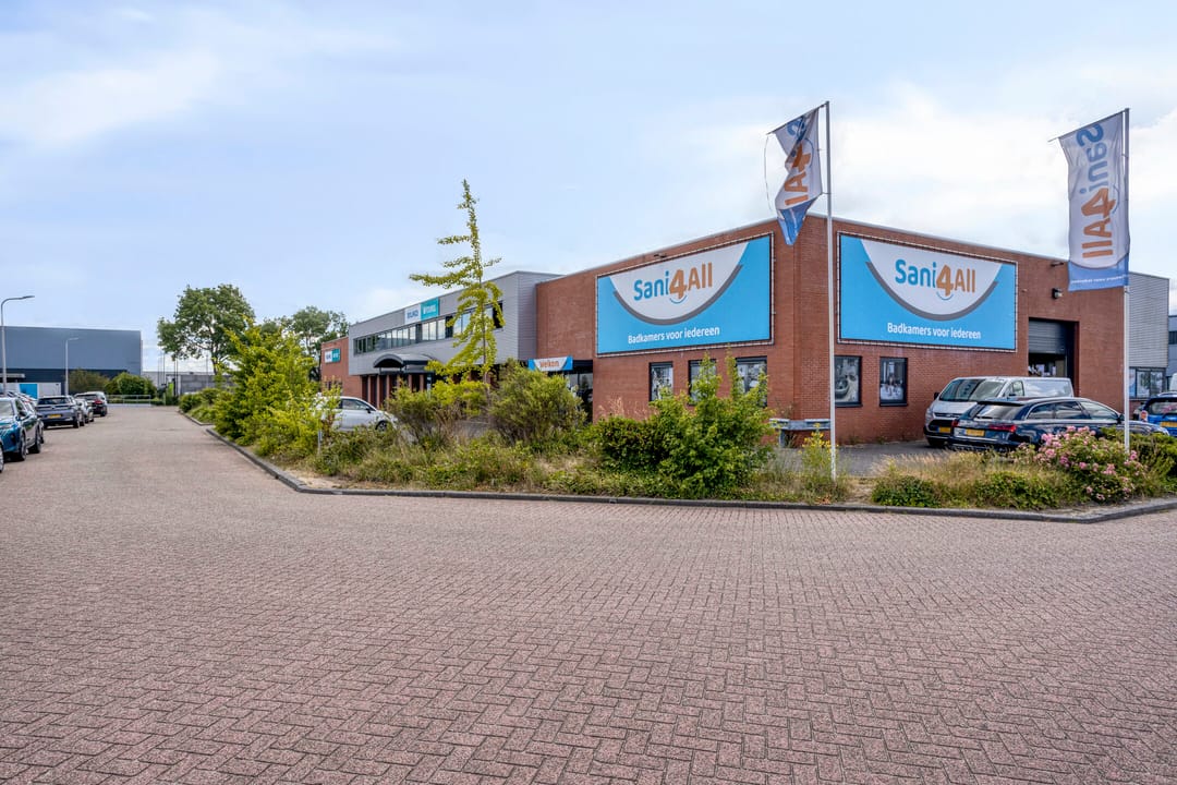 Rechterzijde van het gebouw is langjarig verhuurd aan badkamerspeciaalzaak Sani4all.
