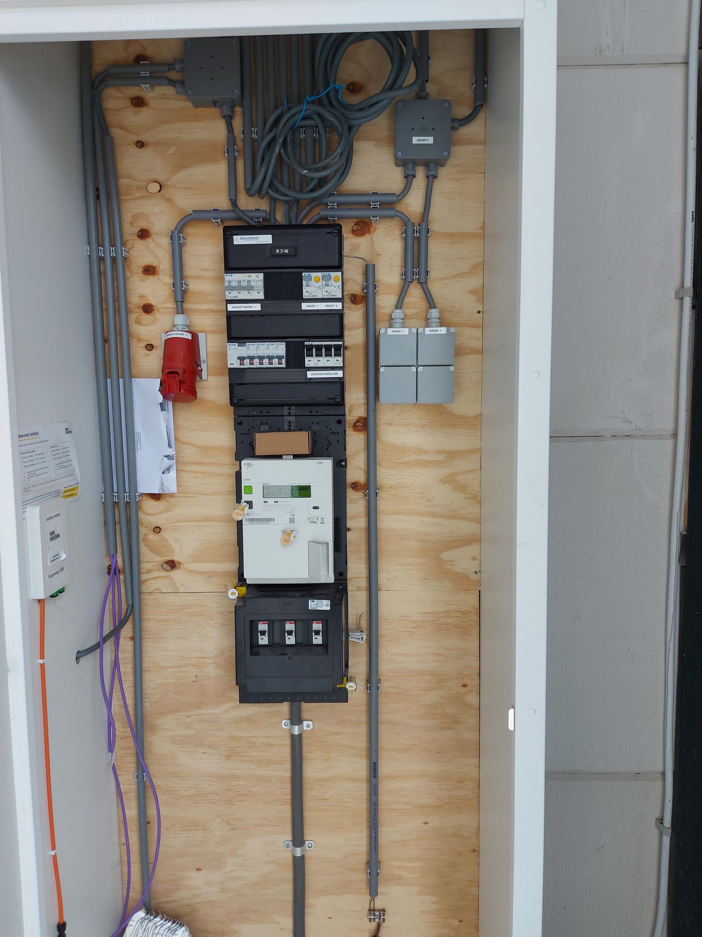 -Meterkast elektra 3 x 25 amp, glasvezelaansluiting, aansluitingen/kabels t.b.v. internet/elektra 1e verdieping
