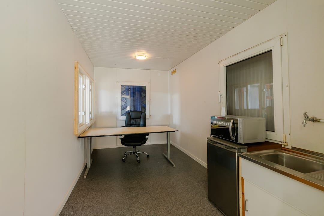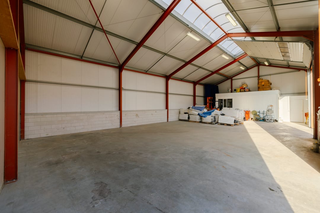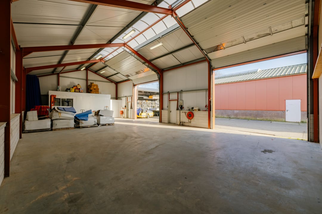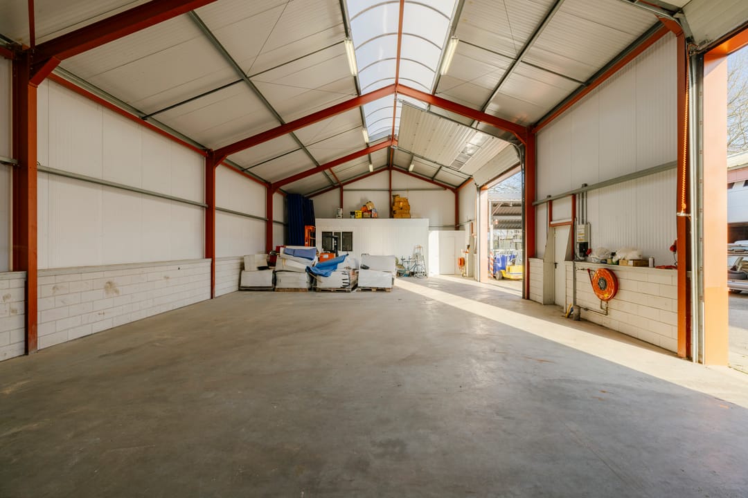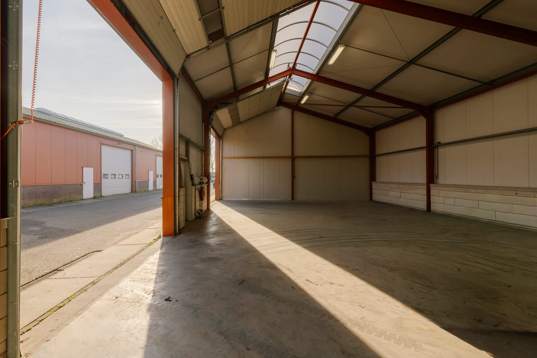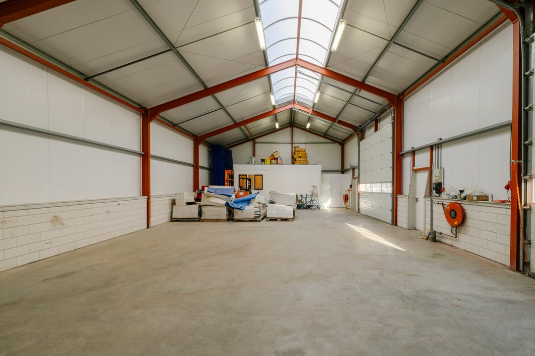 Het object is uitgerust met twee elektrische overheaddeuren, sanitaire voorzieningen, een kleine kantoorruimte met pantry en loopdeuren. Parkeren is mogelijk direct langs de unit.