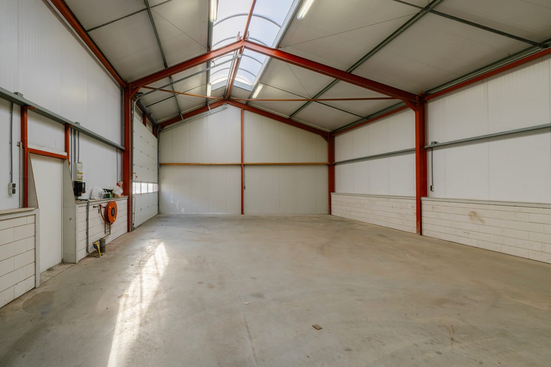 Entree middels overheaddeur met loopdeur, meterkast met tussenmeter, bedrijfsruimte, kleine kantoorruimte met toilet en nog een losse toiletruimte.