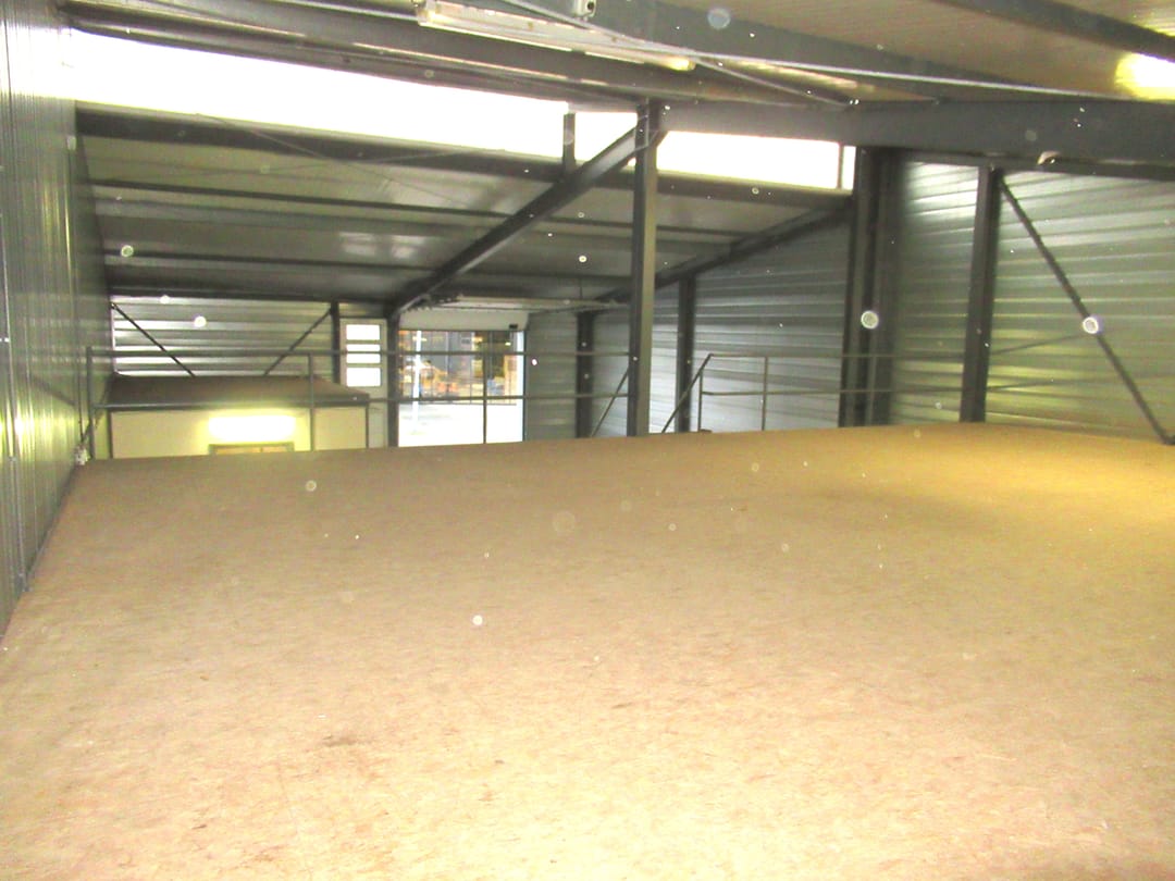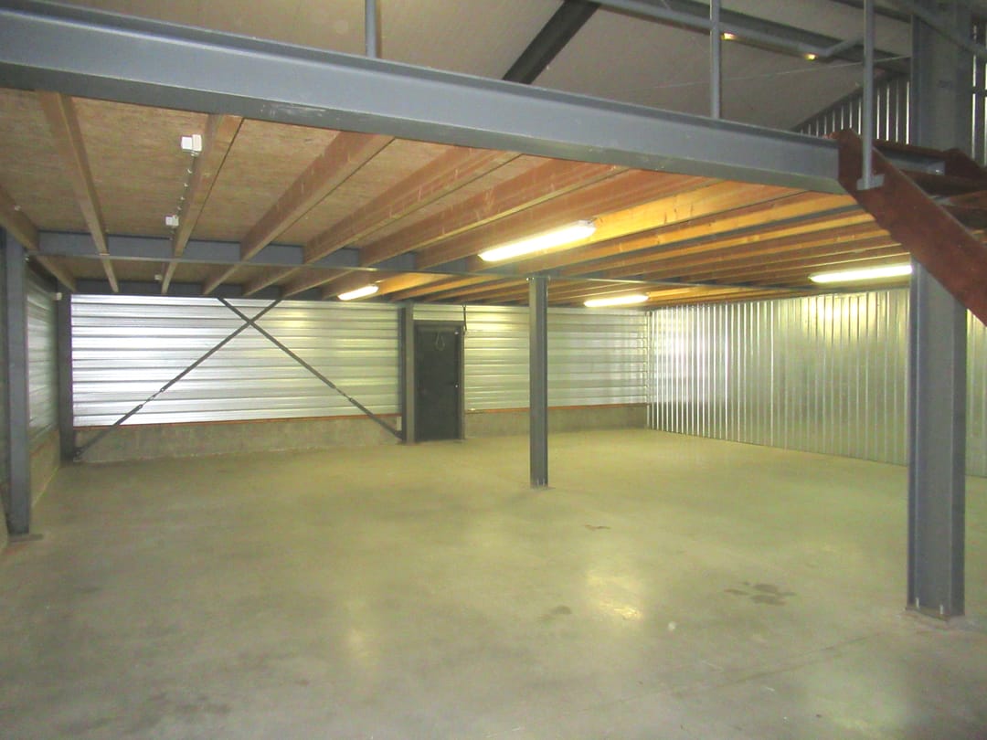- Verdieping: ca. 104 m² opslagruimte, bereikbaar via een interne trap; houten verdiepingsvloer