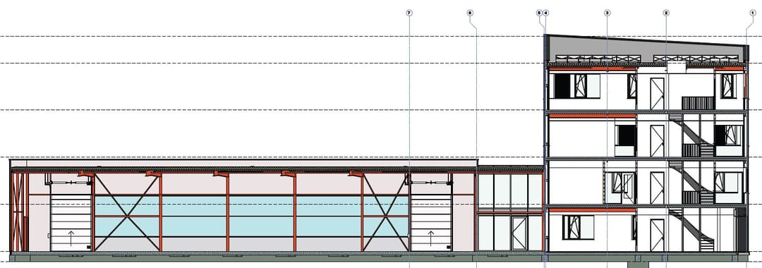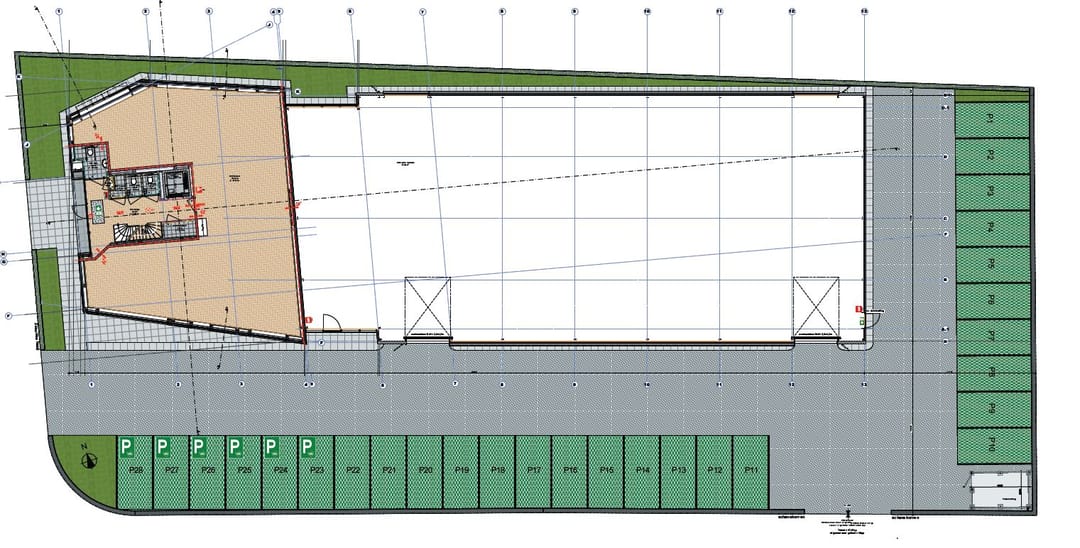Begane grond : 209 m2 kantoor en 660 m2 bedrijfsruimte (hoogte 6 m)