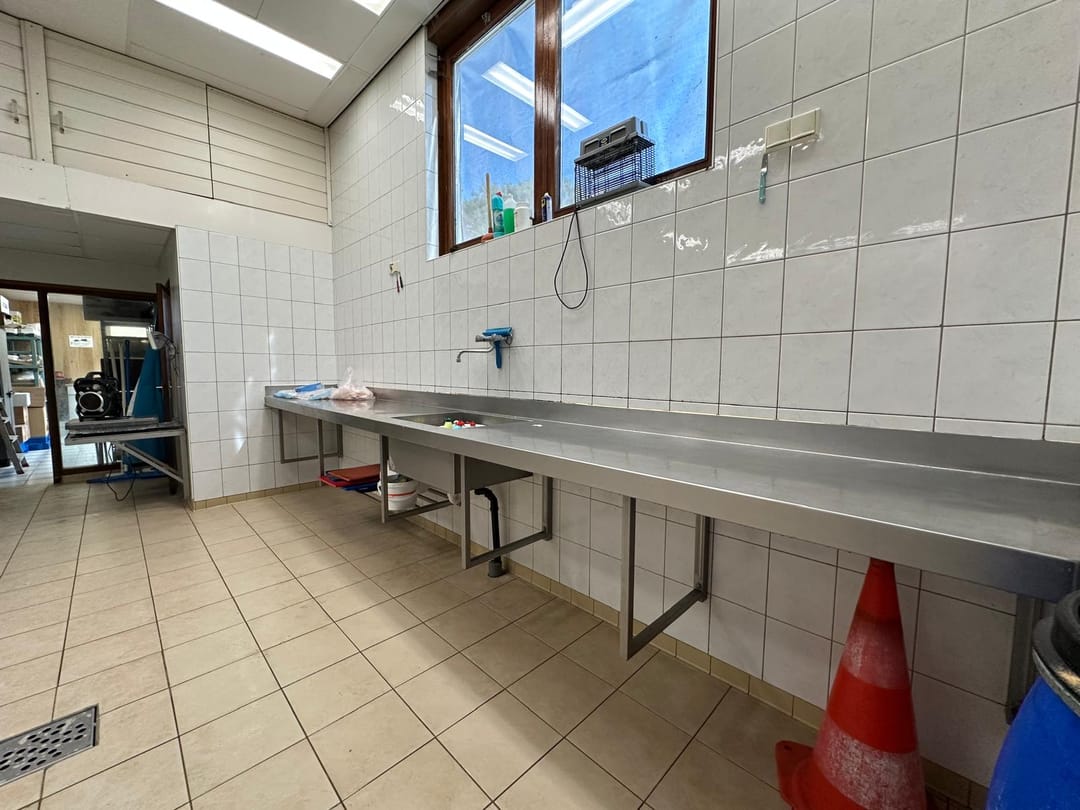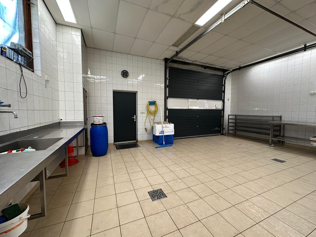 Morseweg 39 is volledig ingericht voor visverwerking met koelcel, vriescel, RVS werkbank, vetvangput, opslagruimte en toilet.