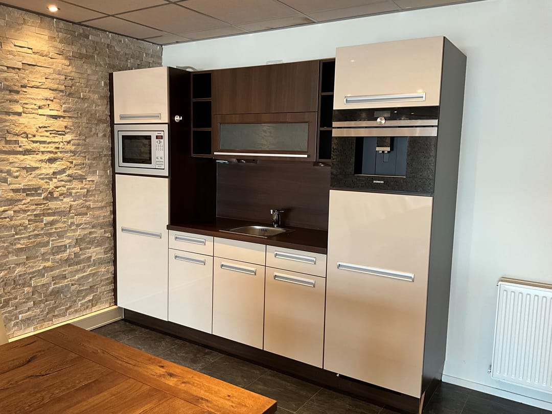 • De inbouwkeuken is voorzien van een combimagnetron, koelkast en koffiezetapparaat