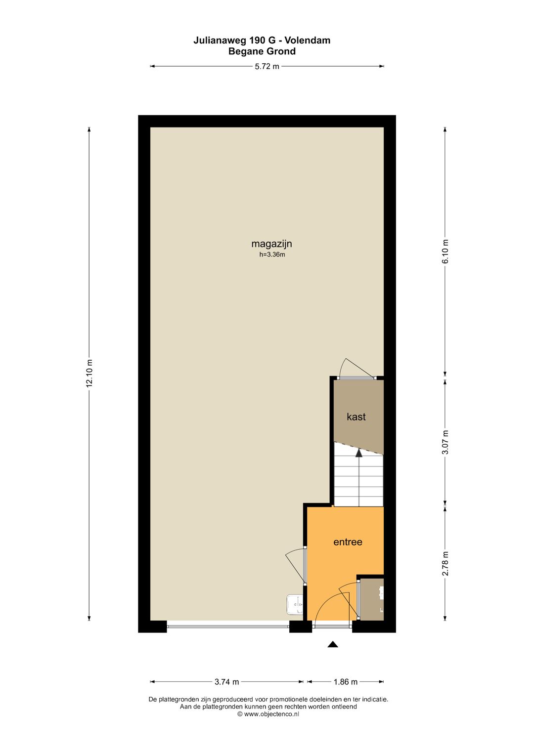 • De begane grond heeft een vrije hoogte van 3.36 meter