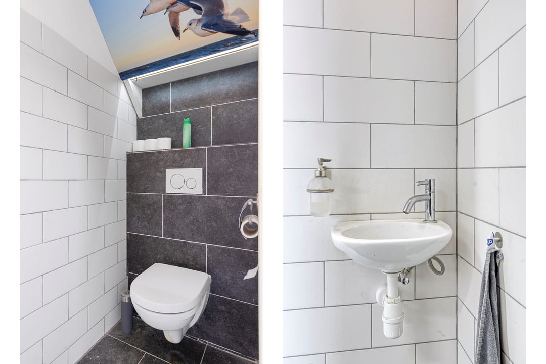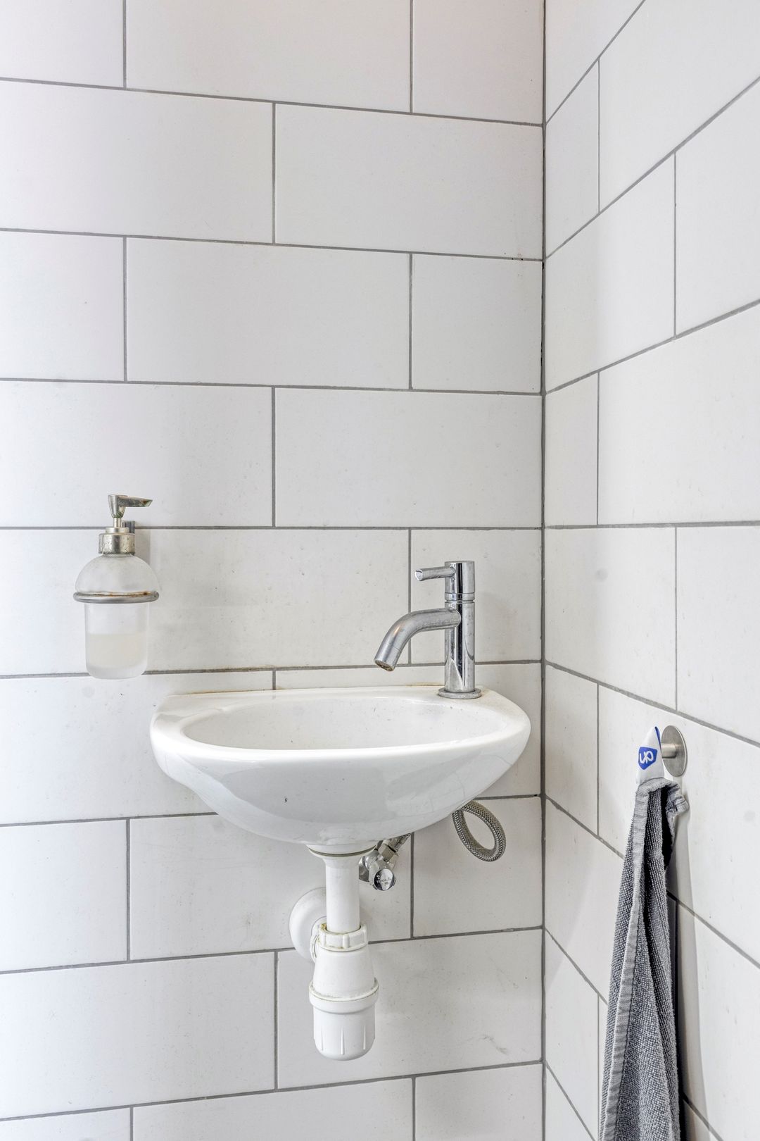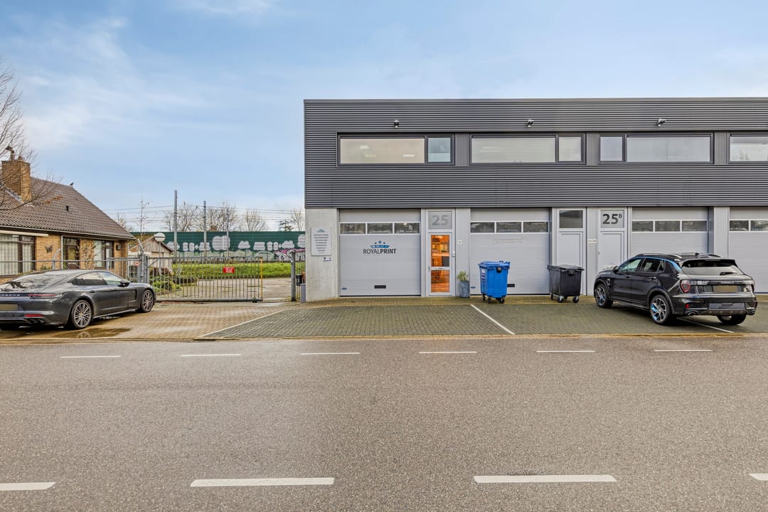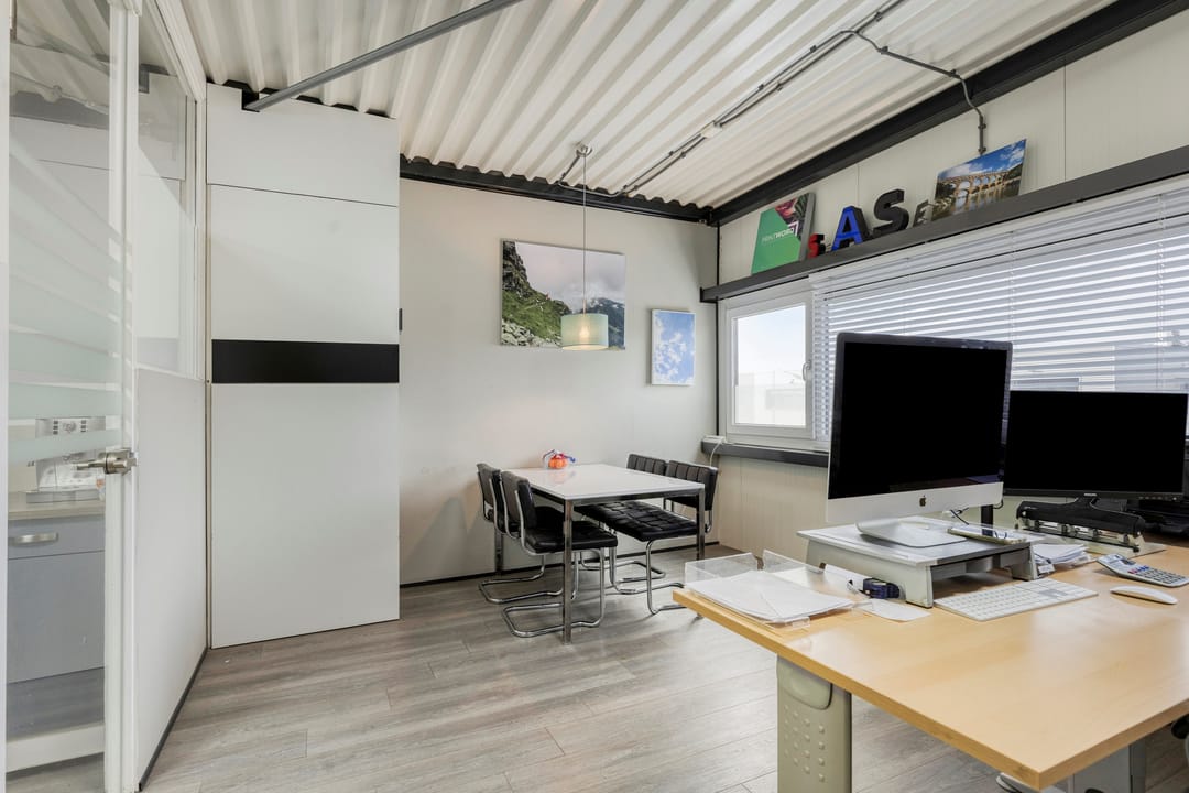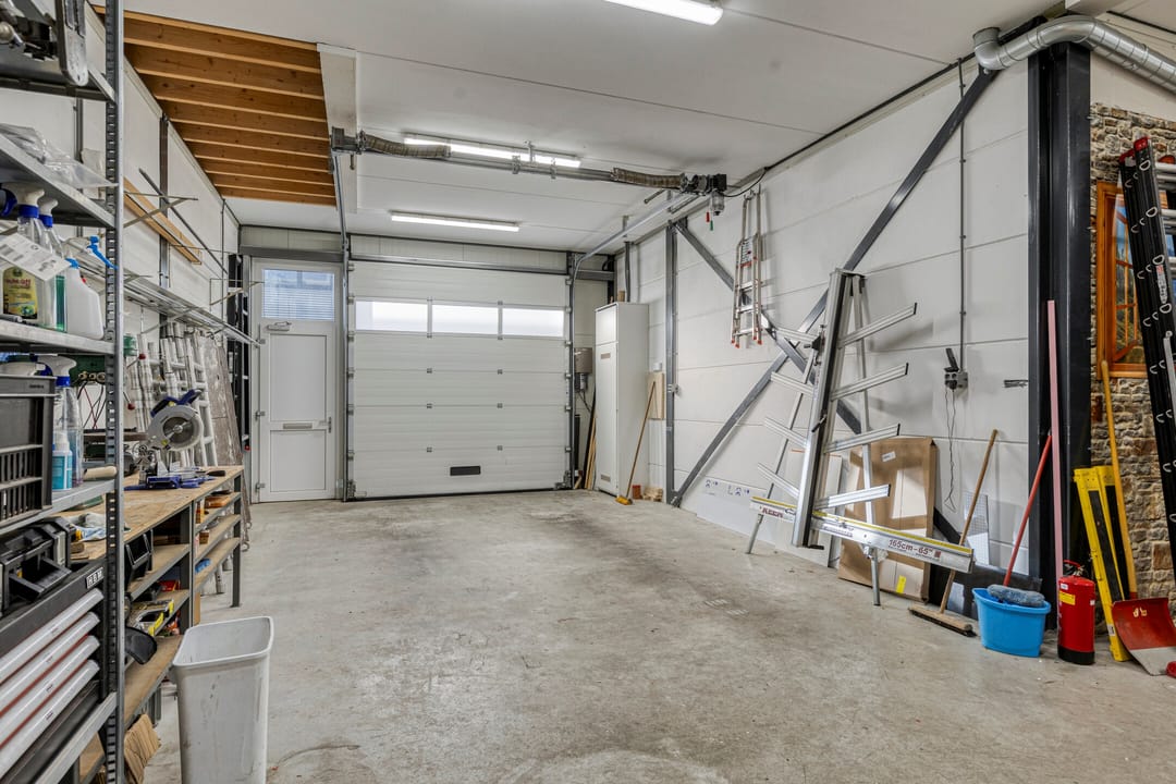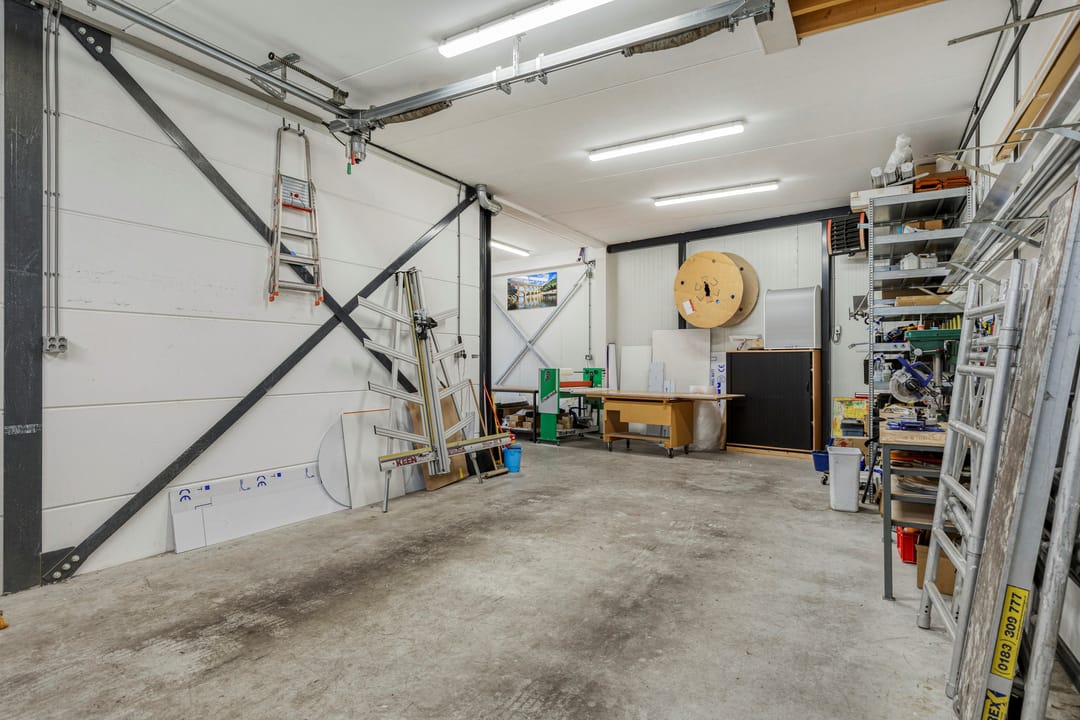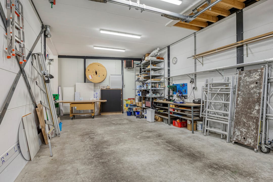 Entree, ruime bedrijfsruimte van van 83m2 in een L-vorm en voorzien van 2 overhead deuren, toilet