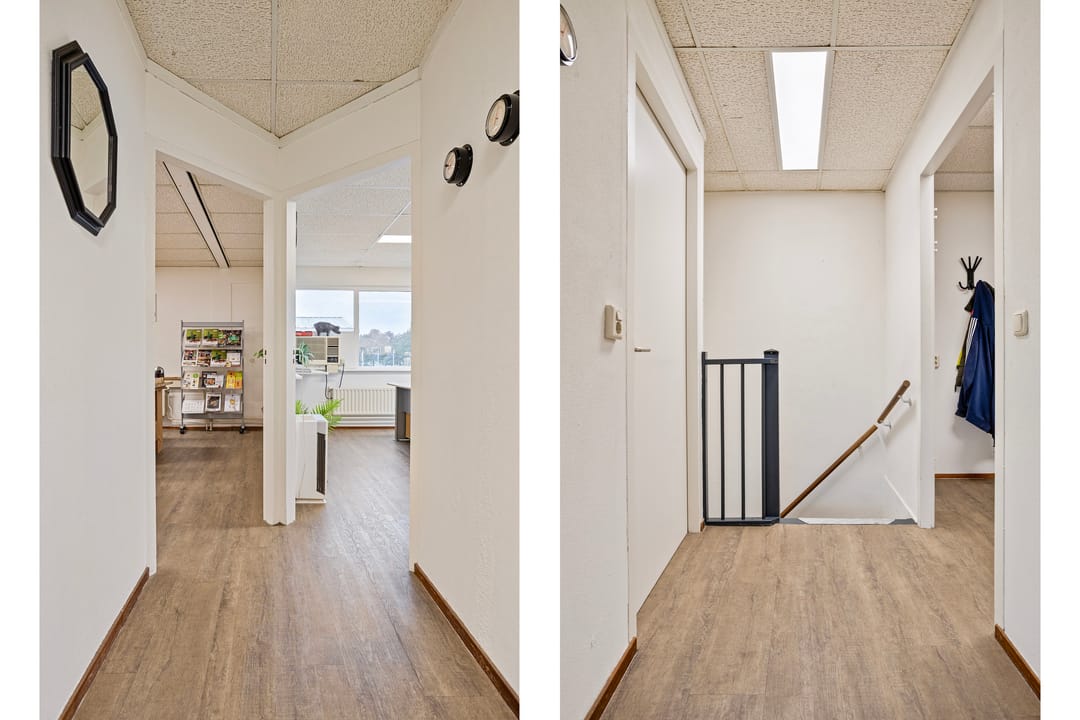 1e verdieping: overloop met een spreekkamer, archiefruimte, tweetal kantoorruimtes en pantry.