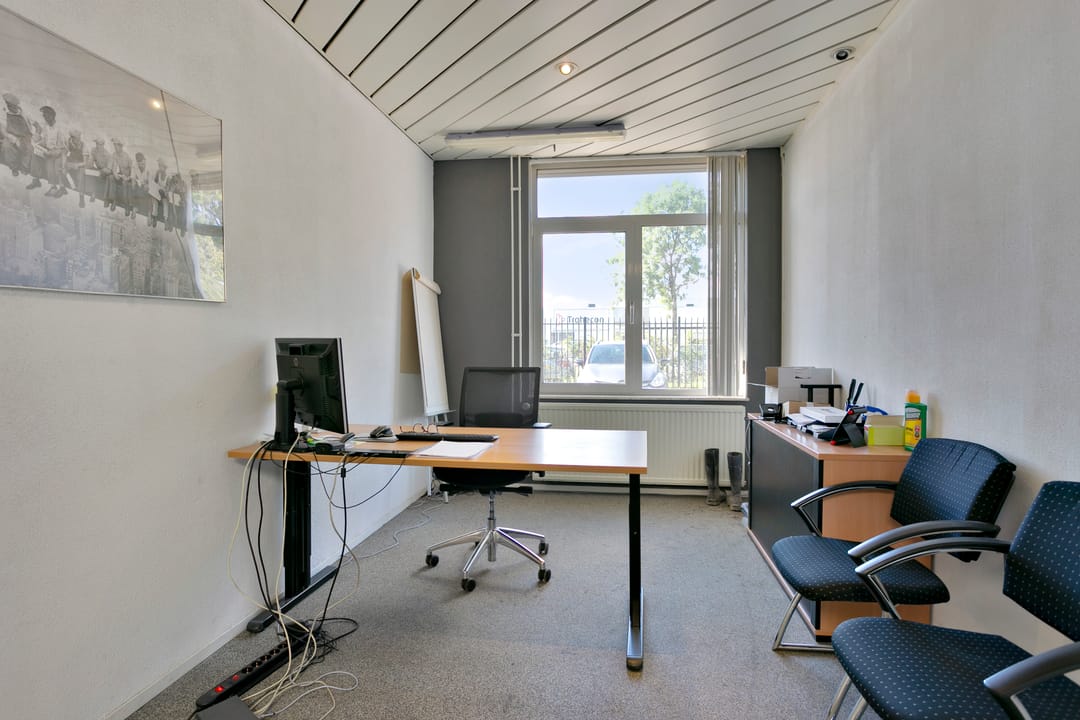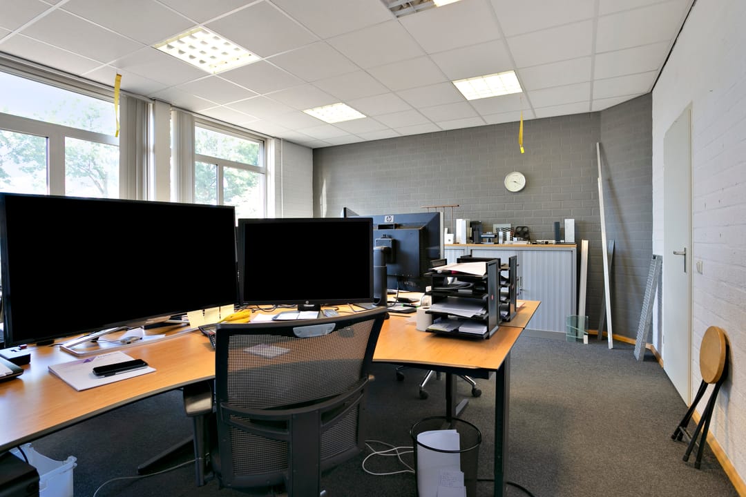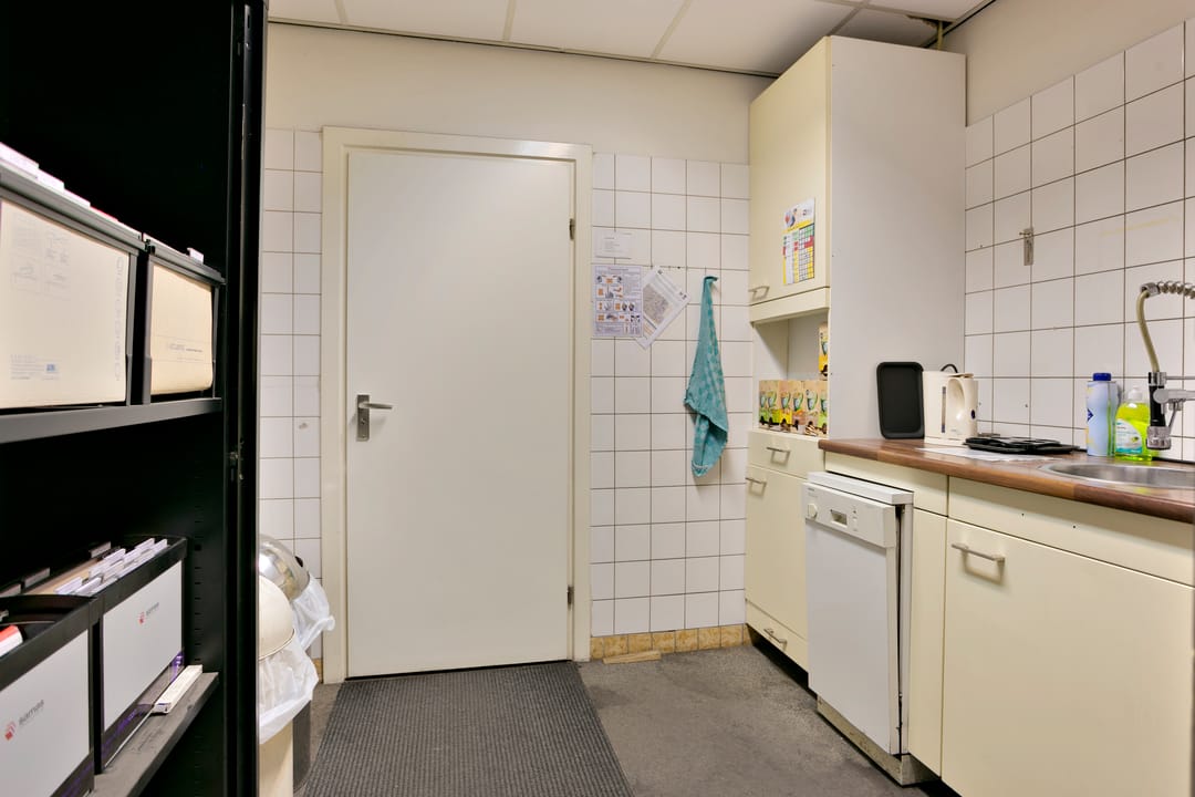 separate toiletgroep voor heren en dames met wastafel en wandcloset. Directiekantoor met laminaatvloer, 6 kantoorunits waarvan 1 met inbouwkast, serverruimte met patchkast, gang met tussenmeter, spreekkamer, 2e separate toiletgroep voor dames en heren met wastafel en wandcloset, reproruimte.