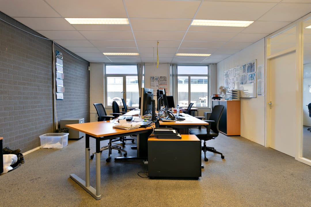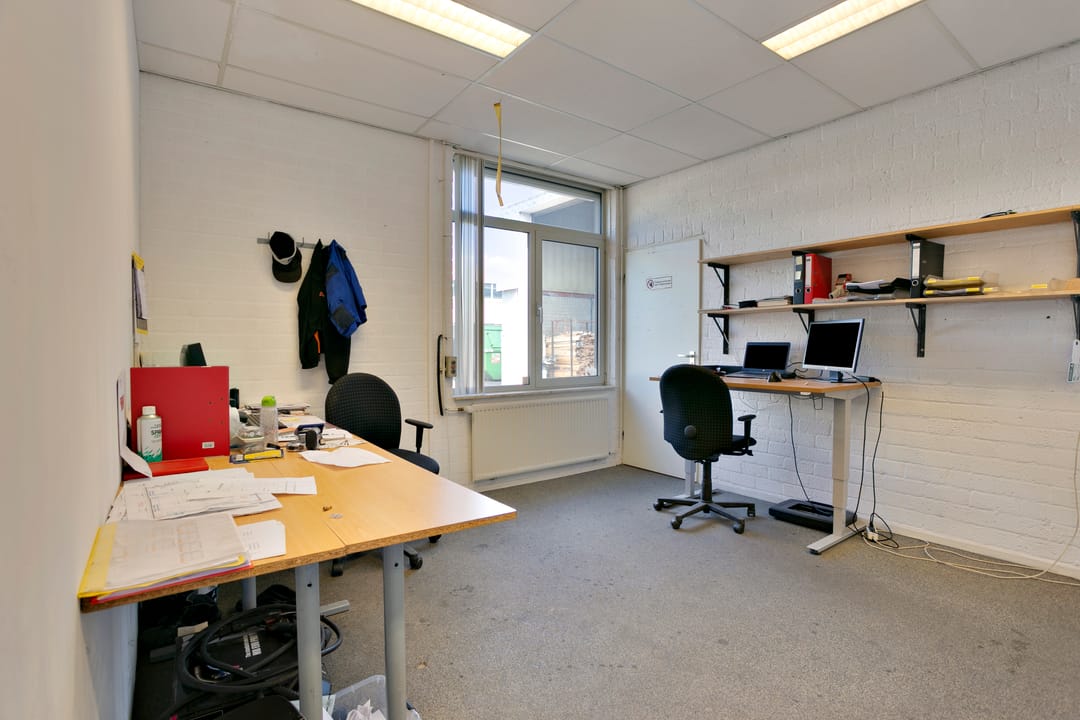 open bedrijfsruimte met keukenblok voorzien van koelkast en vaatwasser, c.v.-ruimte met 2 x c.v.-ketel, eenvoudige kantoorruimte met korreltapijt (circa 5 x 4,50 m), systeemplafond met verlichting, in de hal is een kleine entresol aangebracht van circa 15 x 5 m., garderobe/wasruimte met douche, separate toiletgroep voor heren en dames.