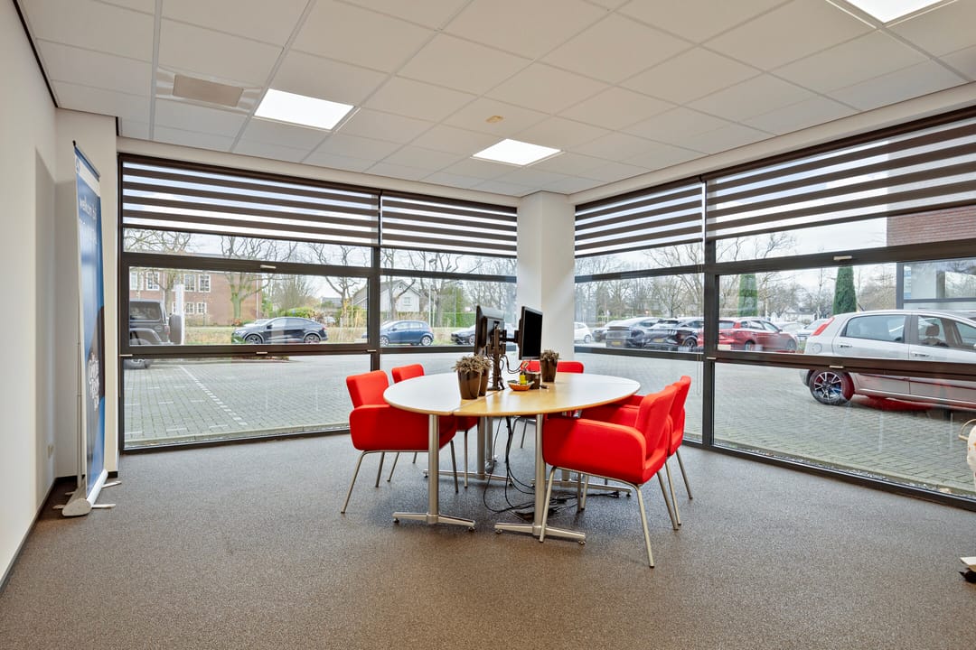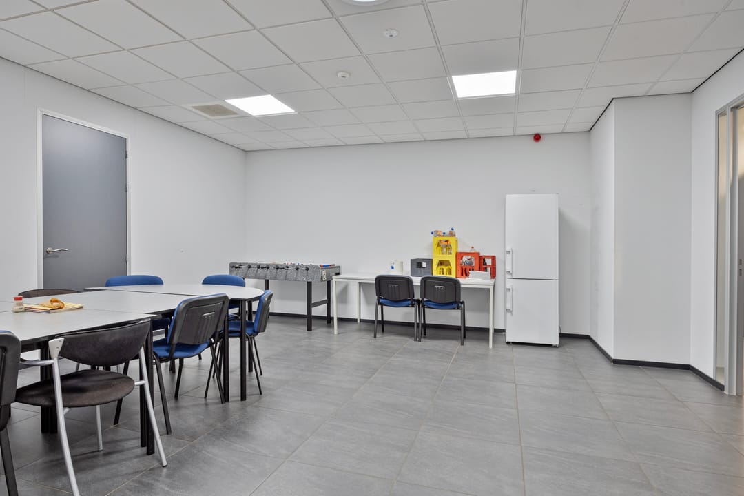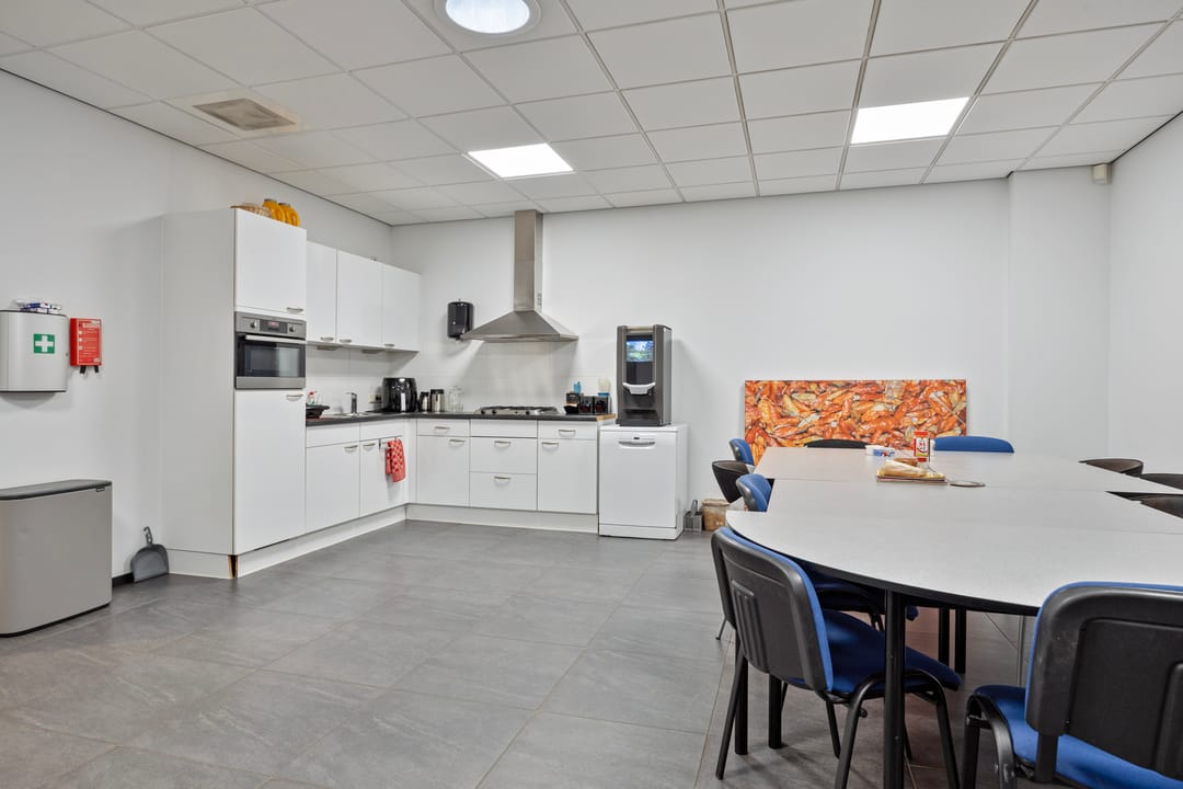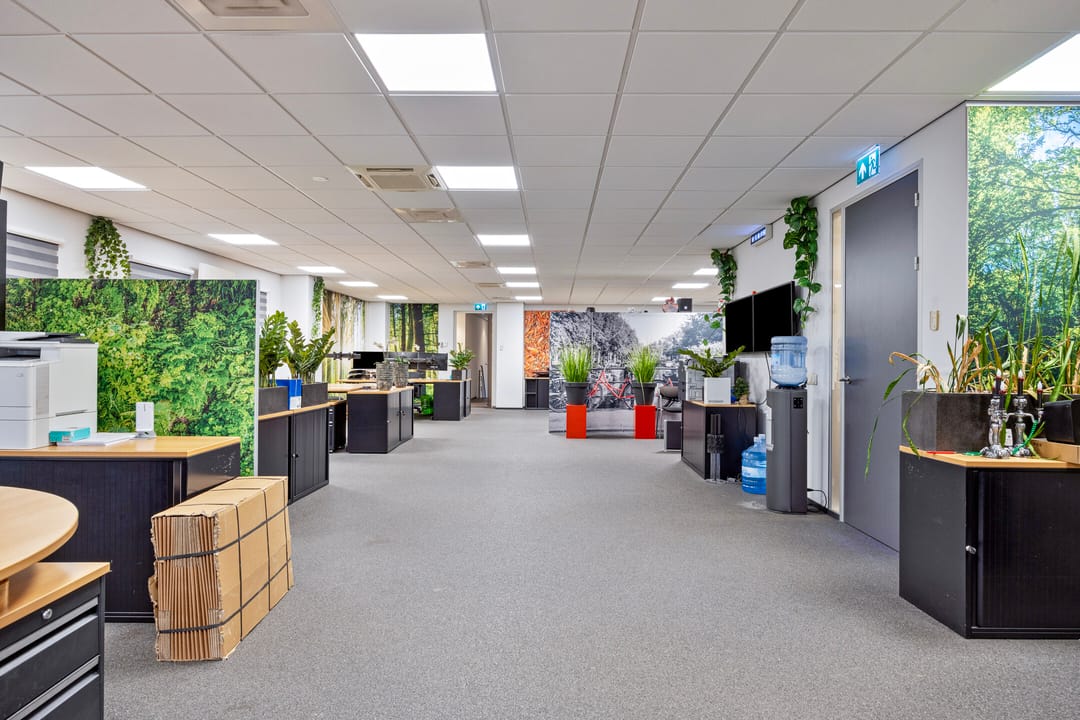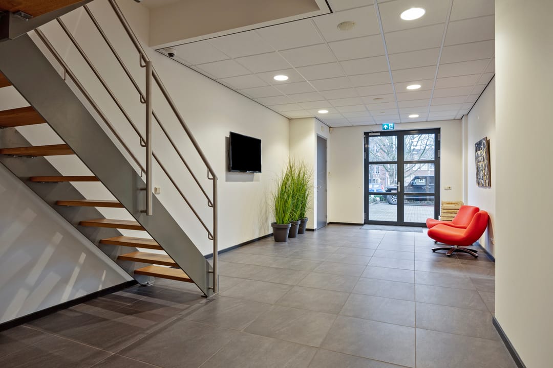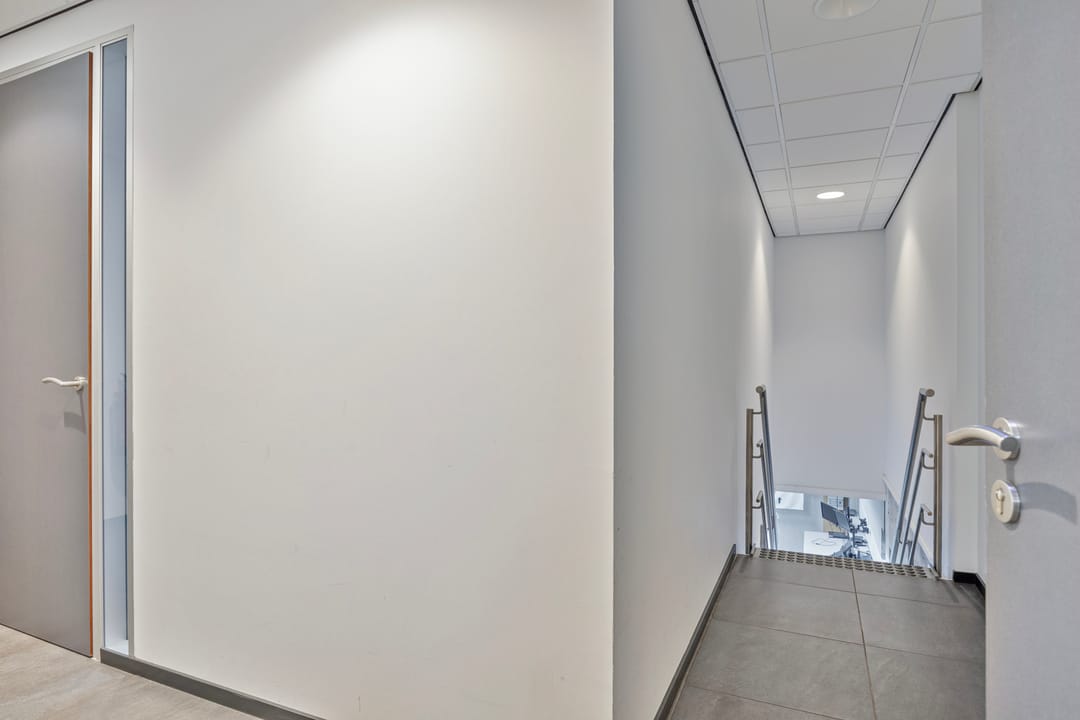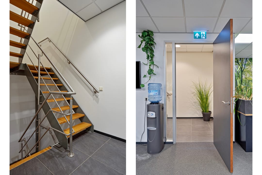 Entree, dubbele spreekkamer/kantoorruimte. Toiletten, pantry, toegang naar de bedrijfsruimte. Via de trap in de bedrijfsruimte of entree is de verdieping te bereiken. Op de 1e verdieping is een open kantoortuin met spreekkamer, kantine en opslagruimte. Via de trap is de 2e verdieping bereikbaar waar een eigen invulling gecreëerd kan worden met dakterras.