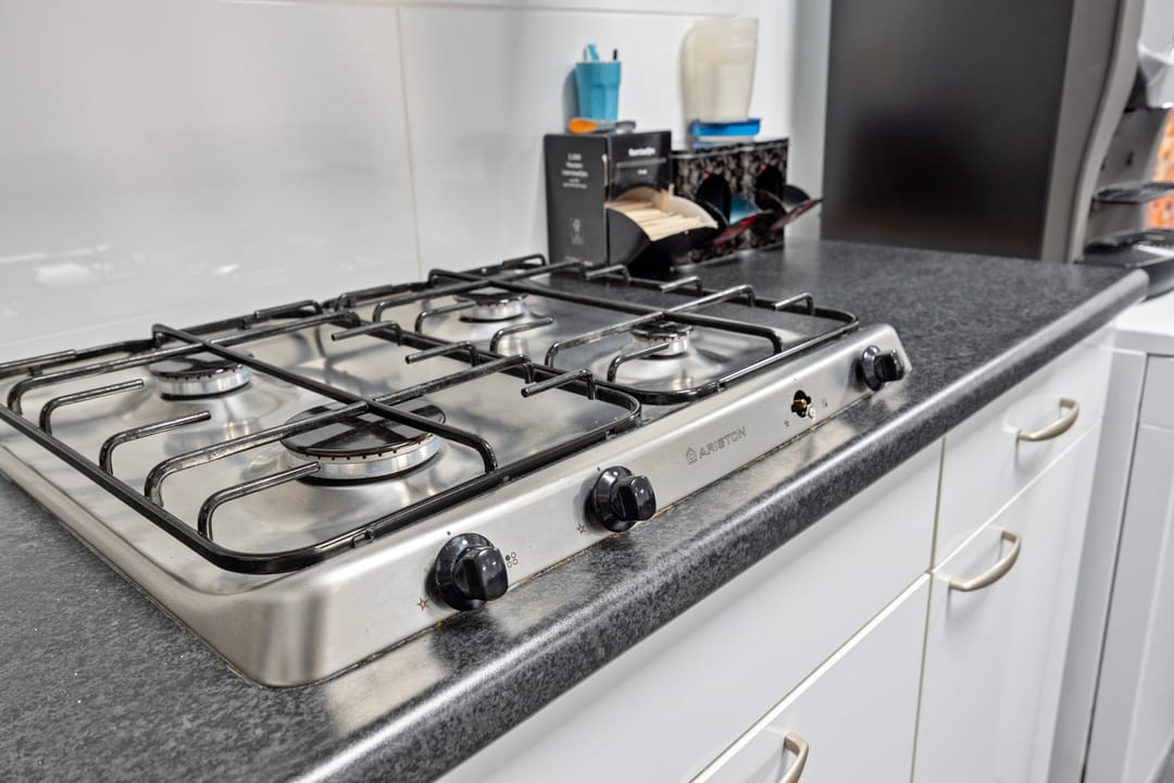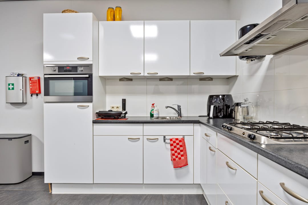 - Pantry met vaatwasser en koelkast, 4-pits gasfornuis en combimagnetron (verdieping);