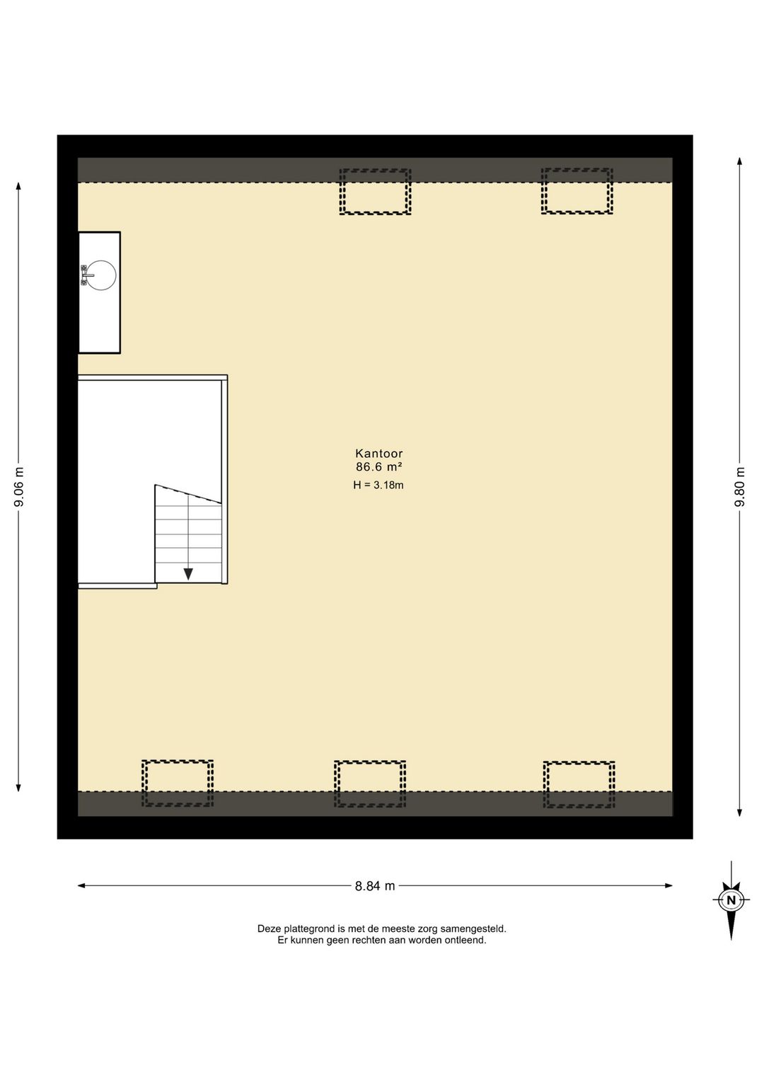 begane grond: ca. 90 m² bvo;
