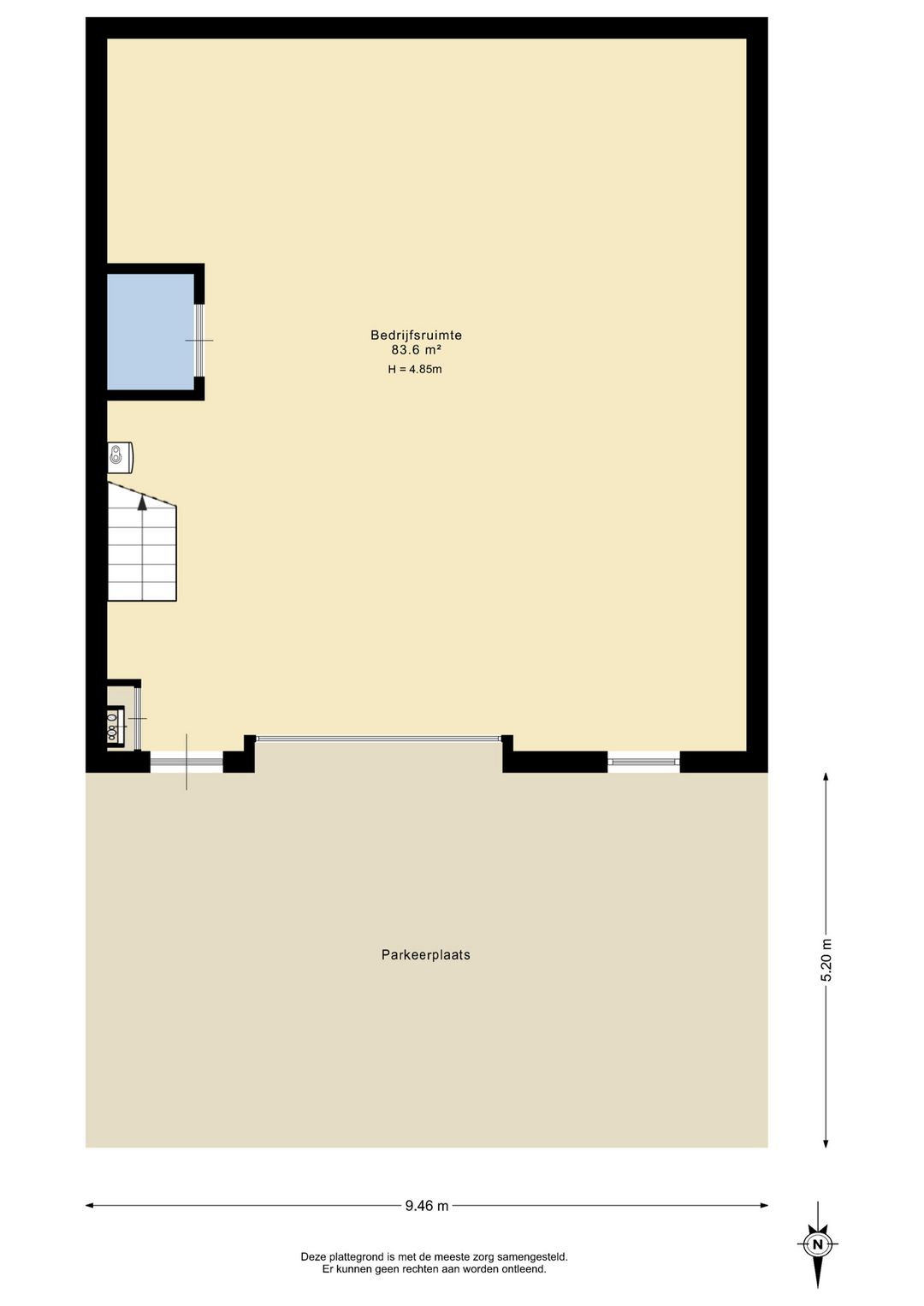 - vrije hoogte onder de verdiepingsvloer van ca. 4,6 meter;