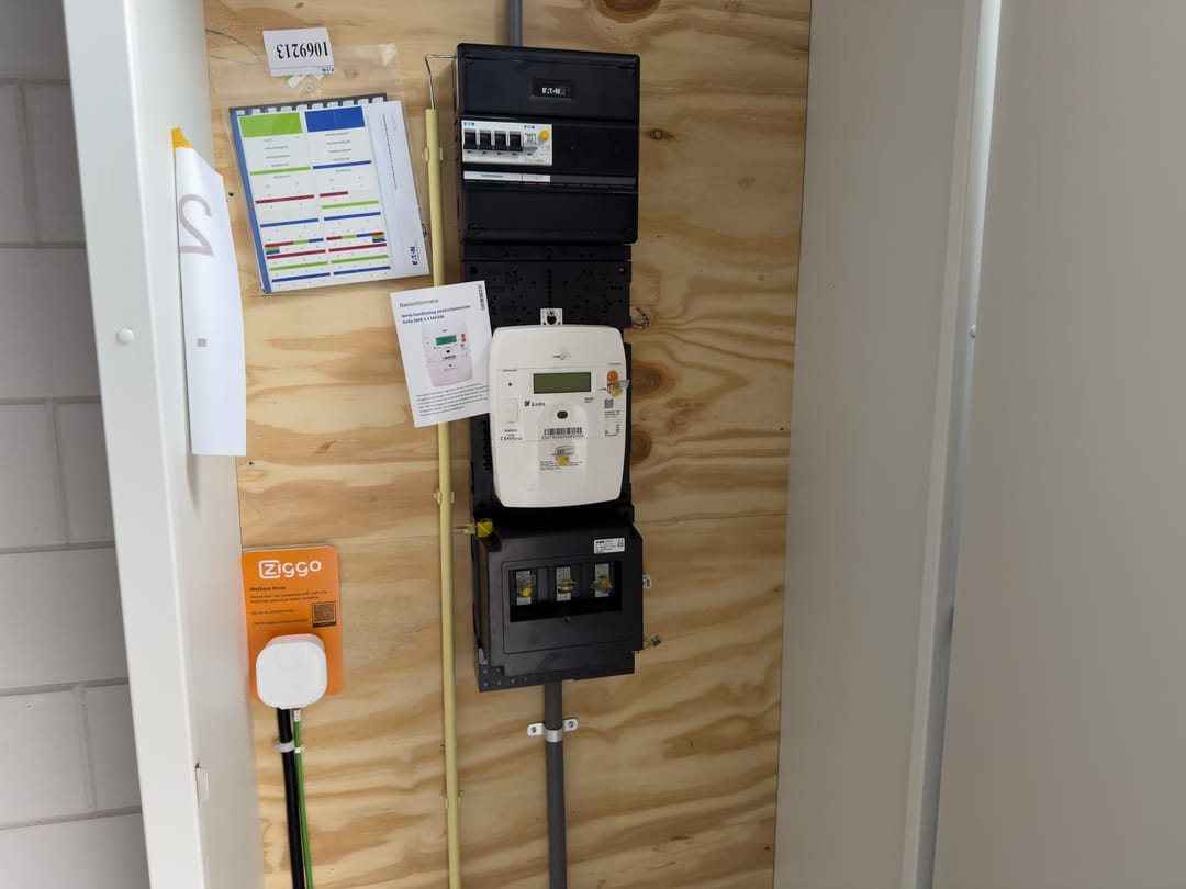 - Eigen meterkast met groepenkast (4 groepen, hoofd- en aardlekschakelaar)