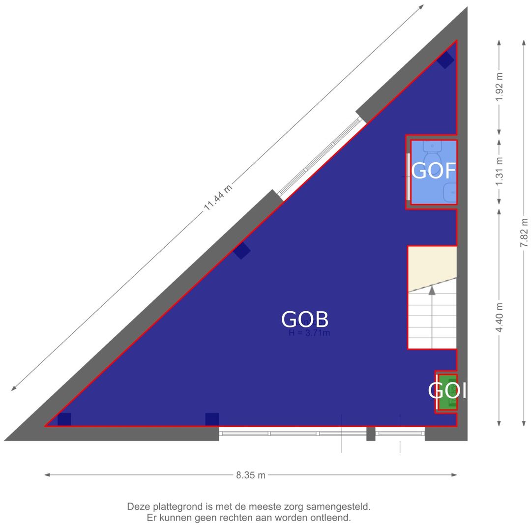 Via de eigen entree betreedt u de bedrijfsruimte op de begane grond, waar direct de royale hoogte van circa 3,7 meter opvalt. De open indeling zorgt voor maximale flexibiliteit en maakt de ruimte geschikt voor uiteenlopende bedrijfsactiviteiten. Door de grote raampartijen aan de voorzijde profiteert u van een prettige hoeveelheid daglicht, wat niet alleen bijdraagt aan het werkcomfort, maar ook zorgt voor een representatieve uitstraling naar buiten toe.