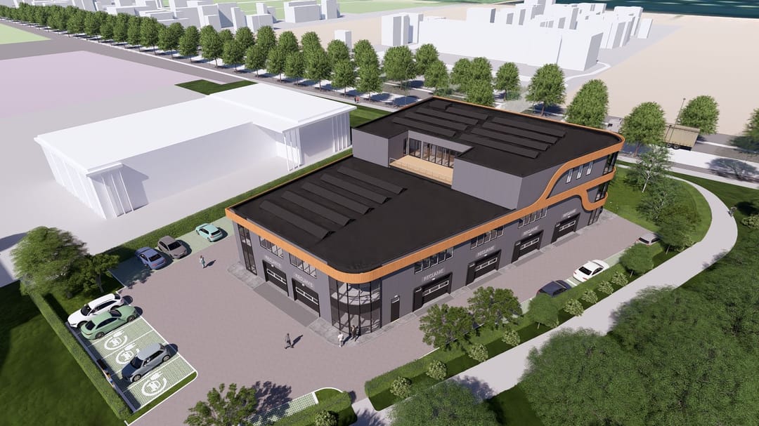 In het 3e kwartaal van 2025 is gestart met de bouw van een modern en representatief bedrijfsverzamelpand, bestaande uit 10 bedrijfs-/kantoorunits en een royaal pentoffice op de 2e verdieping. Het gebouw kenmerkt zich door een moderne uitstraling, hoogwaardig materiaalgebruik en een prominente zichtlocatie aan de doorgaande weg tussen Wageningen en Rhenen.
