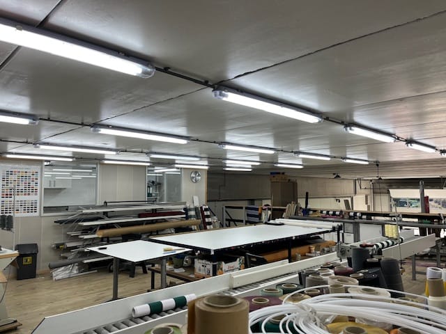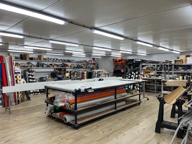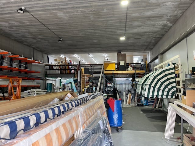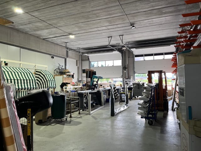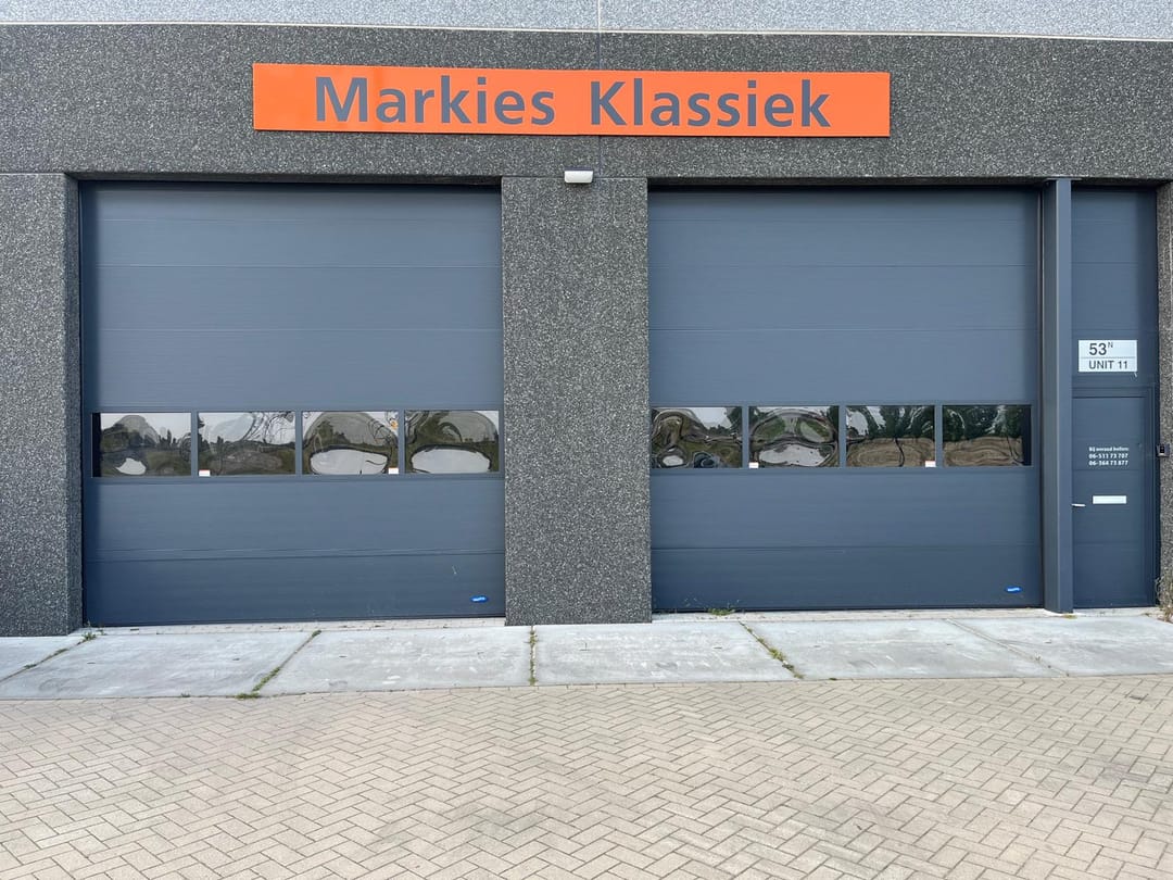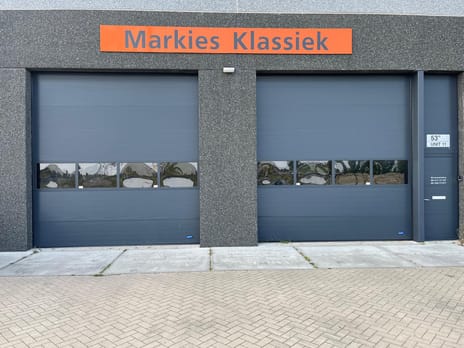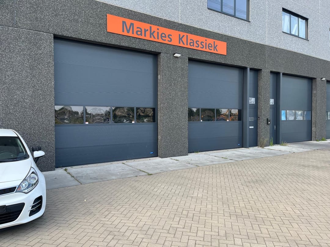 Twee elektrische overheaddeuren (op afstand bedienbaar via camera-bel) met lichtstrook voor gemakkelijke toegang en daglichttoetreding.