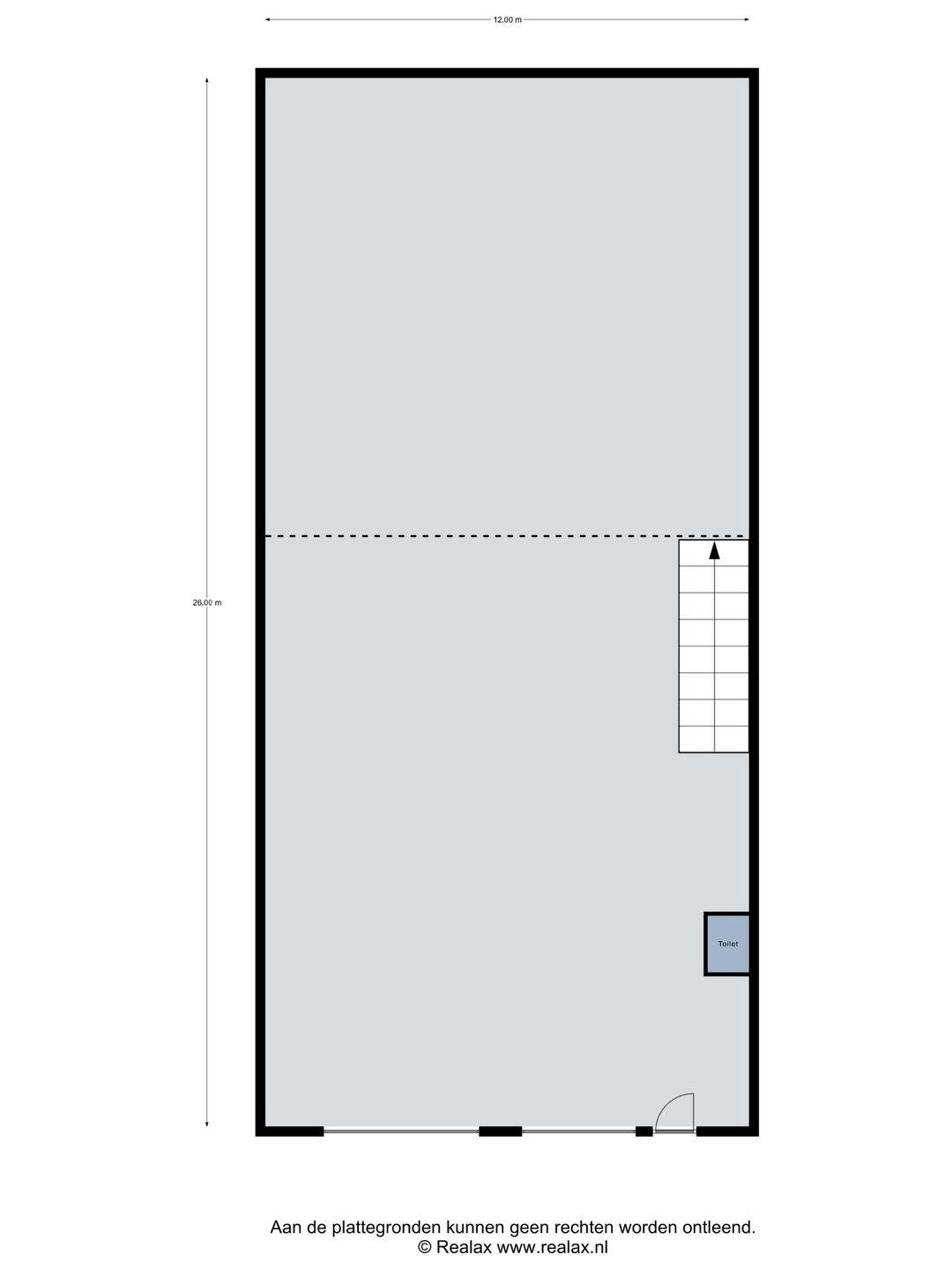 Dit bedrijfspand is gelegen op de begane grond en biedt een royale ruimte van circa 318 m². De unit heeft een breedte van circa 12 meter en een diepte van circa 26 meter, met een vrije hoogte van circa 5,30 meter.