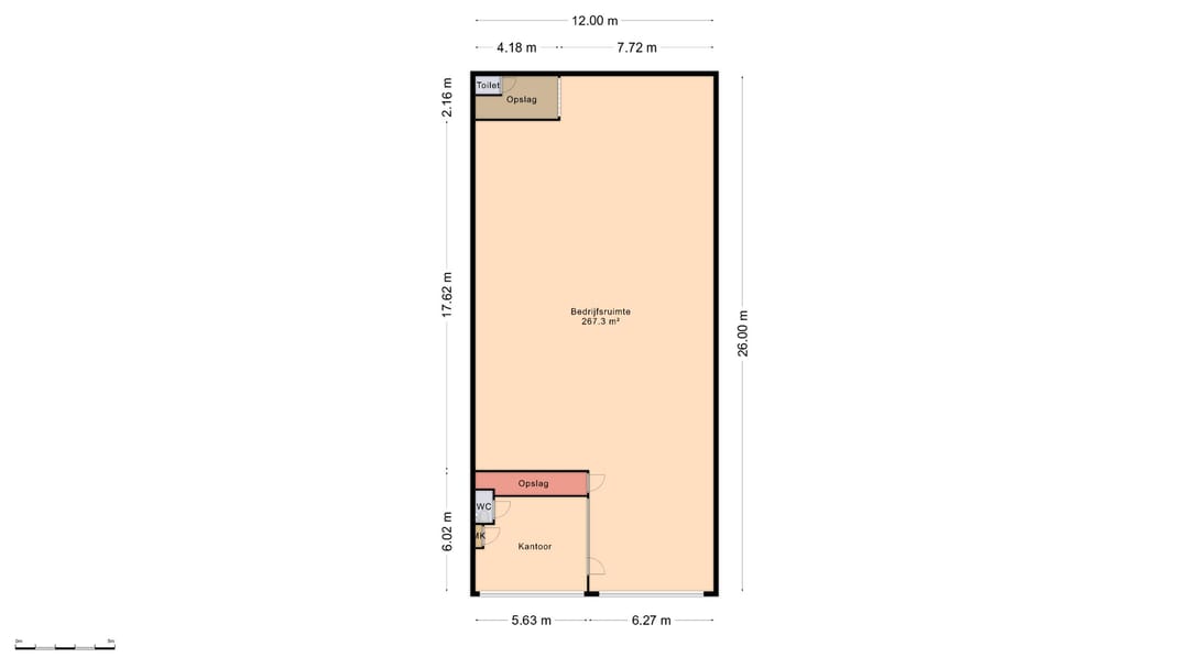 De bedrijfsruimte wordt opgeleverd met de volgende zaken;