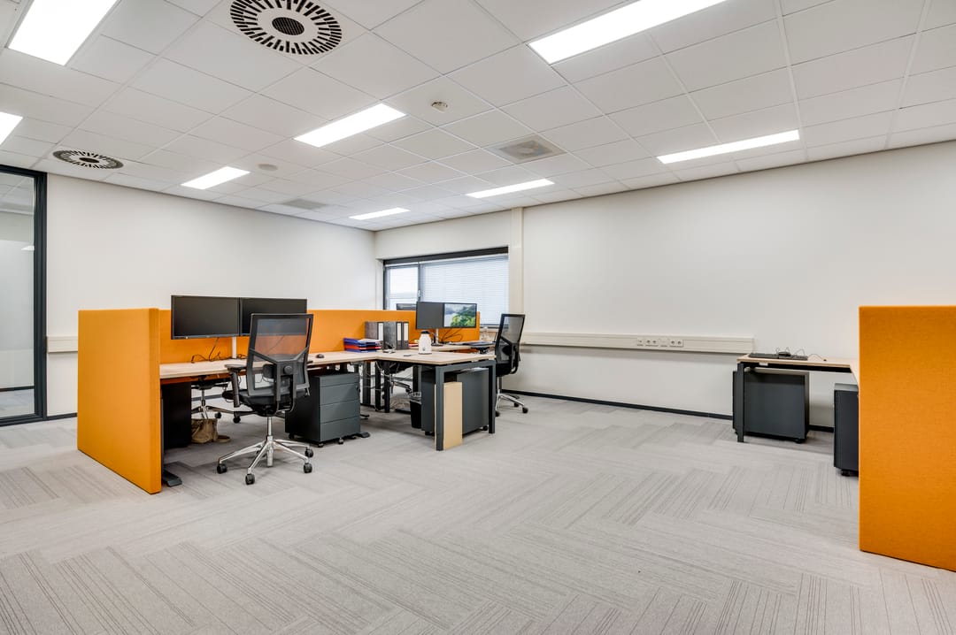 All offices (a total of 10!) are finished with modern carpeting and a suspended ceiling with LED lighting, air conditioning, air heating, ventilation, and a sound and music system. Cable ducts are also available throughout for optimal workplace layout! All offices are fully heated and cooled by a modern heat pump. The building has also recently been fitted with a new high-quality insulated roof.