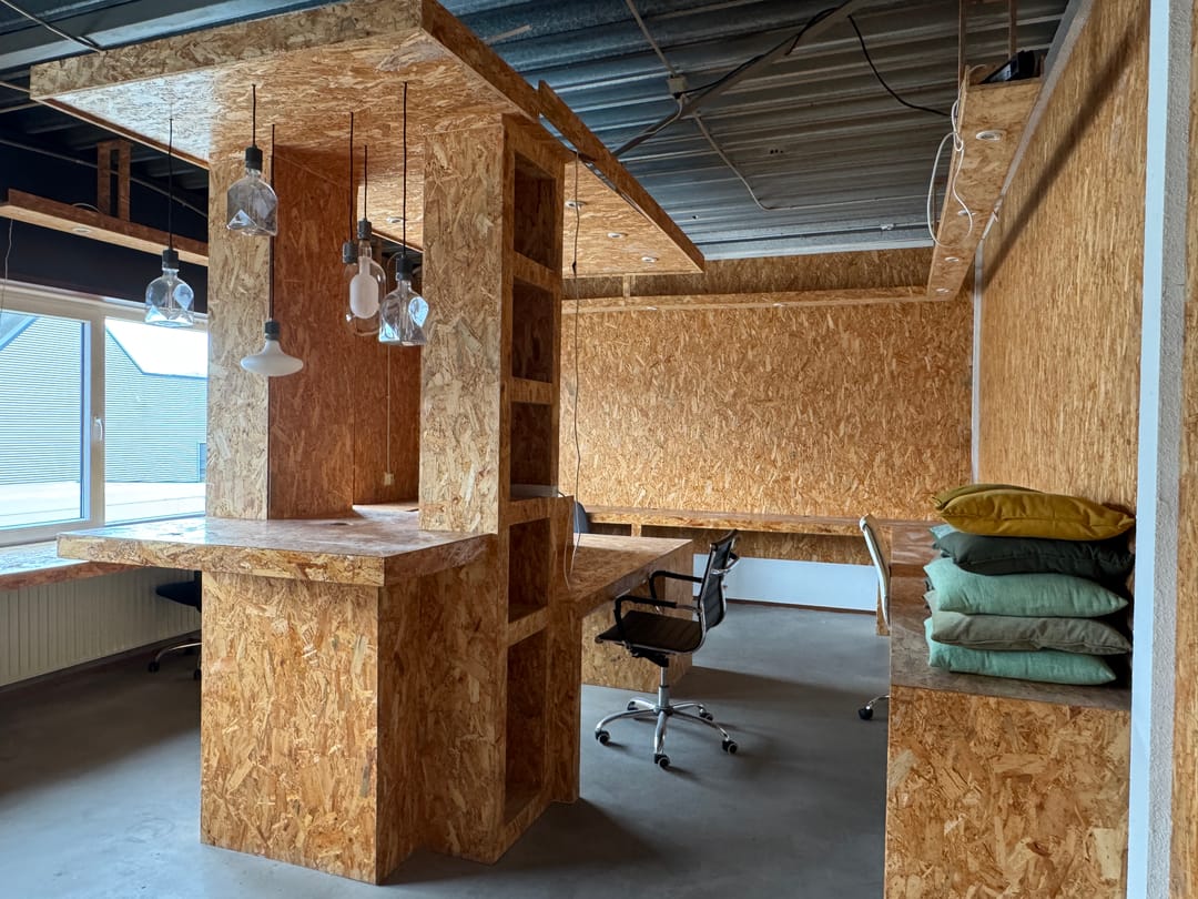 - Speelse inrichting met vaste bureaus en kasten (zie foto's) (overname)