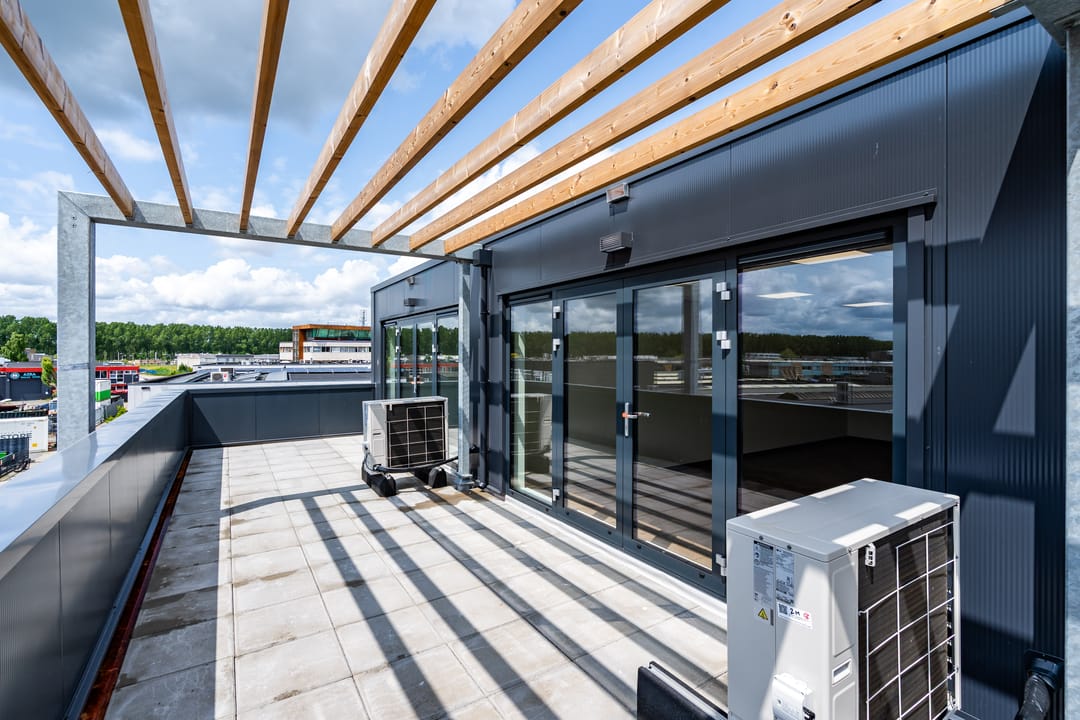 Op bedrijventerrein ’t Noord in Weesp, strategisch gelegen binnen de gemeente Amsterdam, worden twee hoogwaardige en duurzame bedrijfs- en kantoorunits te koop én te huur aangeboden. Het betreft twee naast elkaar gelegen units, die zowel afzonderlijk als gezamenlijk beschikbaar zijn. Elke unit beschikt over een vloeroppervlak van circa 163 m², verdeeld over circa 60 m² op de begane grond, circa 60 m² op de eerste verdieping en circa 43 m² op de tweede verdieping. Daarnaast is elke unit voorzien van een royaal dakterras. Deelverhuur is mogelijk. De Hoge Weyse is een uitstekende locatie voor bedrijven die waarde hechten aan duurzaamheid en een professionele uitstraling. De units worden gerealiseerd op eigen grond en voldoen aan de nieuwste duurzaamheidsnormen. Dit biedt niet alleen voordelen op het gebied van maatschappelijk verantwoord ondernemen, maar ook de mogelijkheid om aanzienlijk te besparen op energiekosten. De units zijn voorzien van een elektrische overheaddeur met een vrije hoogte van circa 3,0 meter en een breedte van circa 2,7 meter. De luxe uitstraling wordt versterkt door het gebruik van hoogwaardige materialen, houten geveldelen en het ruime dakterras op de tweede verdieping. Het duurzame en onderhoudsvriendelijke ontwerp maakt deze bedrijfsruimtes bij uitstek geschikt voor ondernemingen die functionaliteit willen combineren met representativiteit.