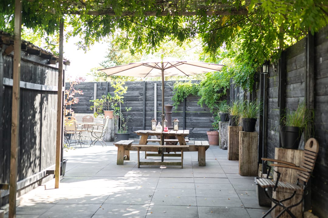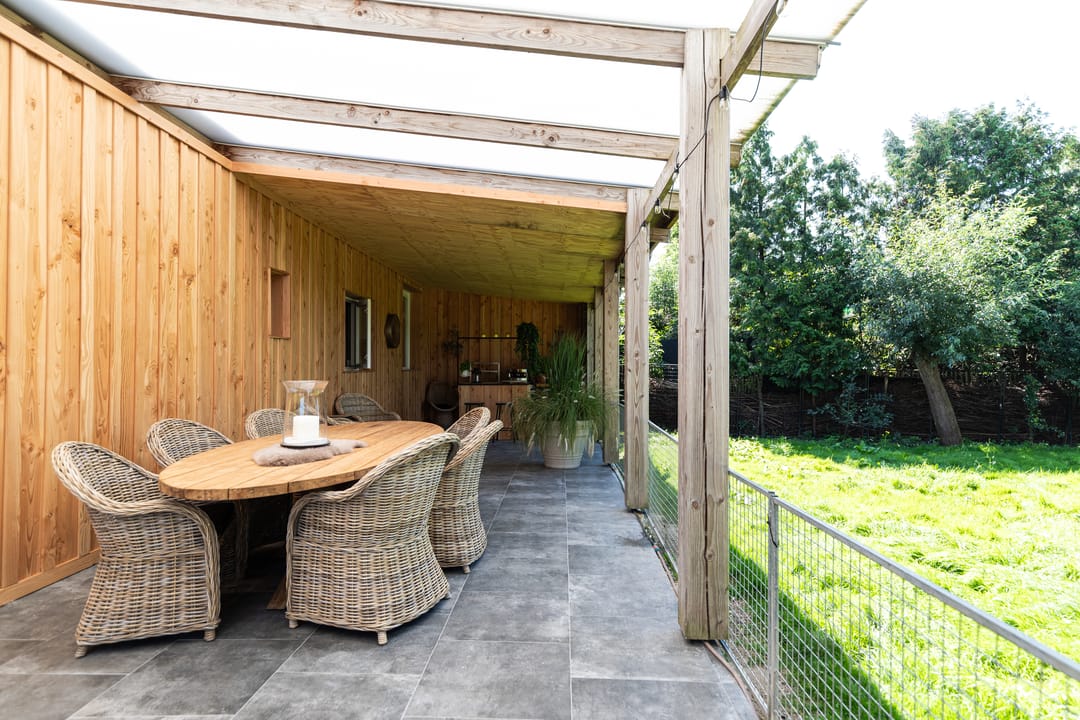 De buitenruimte van deze woning is wat deze woning zo uniek maakt. De dubbele oprit, een beschutte binnentuin en een ruime veranda met buitenkeuken en barbecue bieden eindeloze mogelijkheden om te genieten van het buitenleven.
