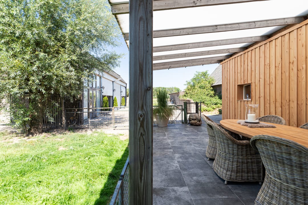 2. Perfect voor dierenliefhebbers en hobbyisten: Ruime weilanden, een originele schuur met paardenstallen, een groot bijgebouw en de mogelijkheid om een rijbak te realiseren maken dit de droomlocatie voor iedere paardenliefhebber. De bijgebouwen bieden volop mogelijkheden voor het houden van dieren of het uitvoeren van andere hobby’s.