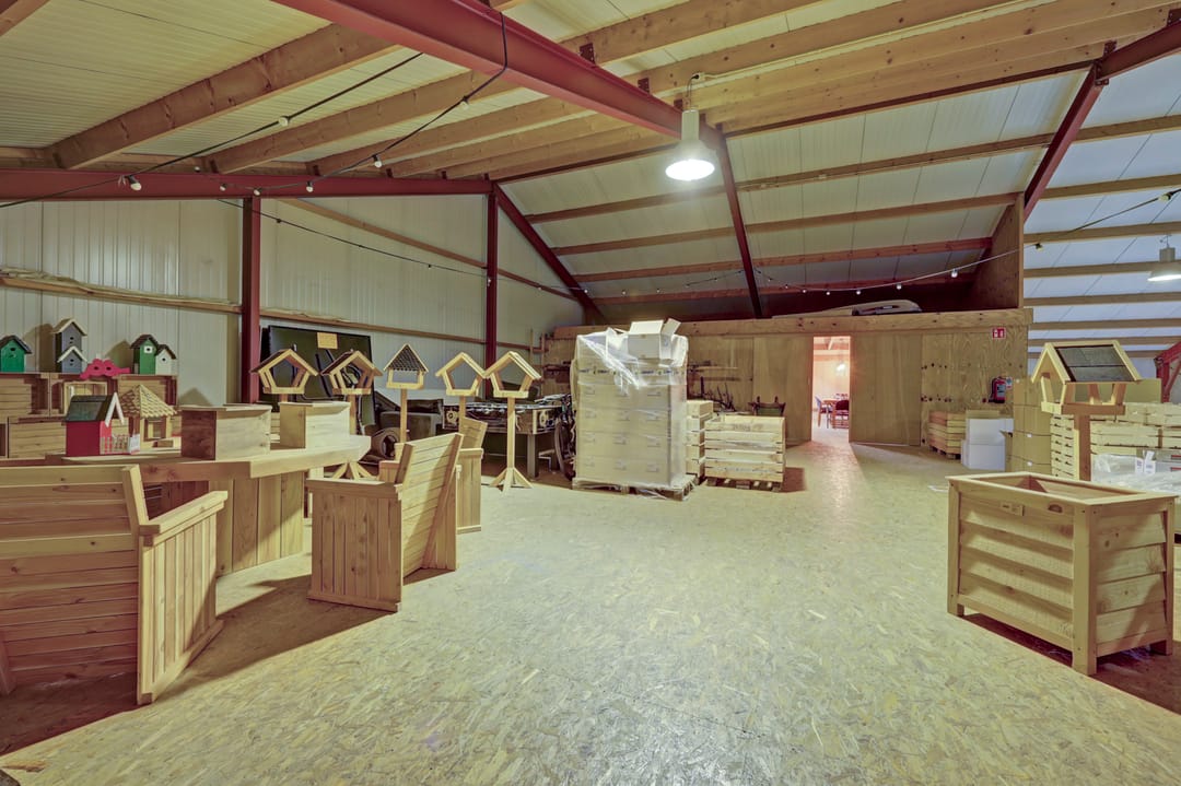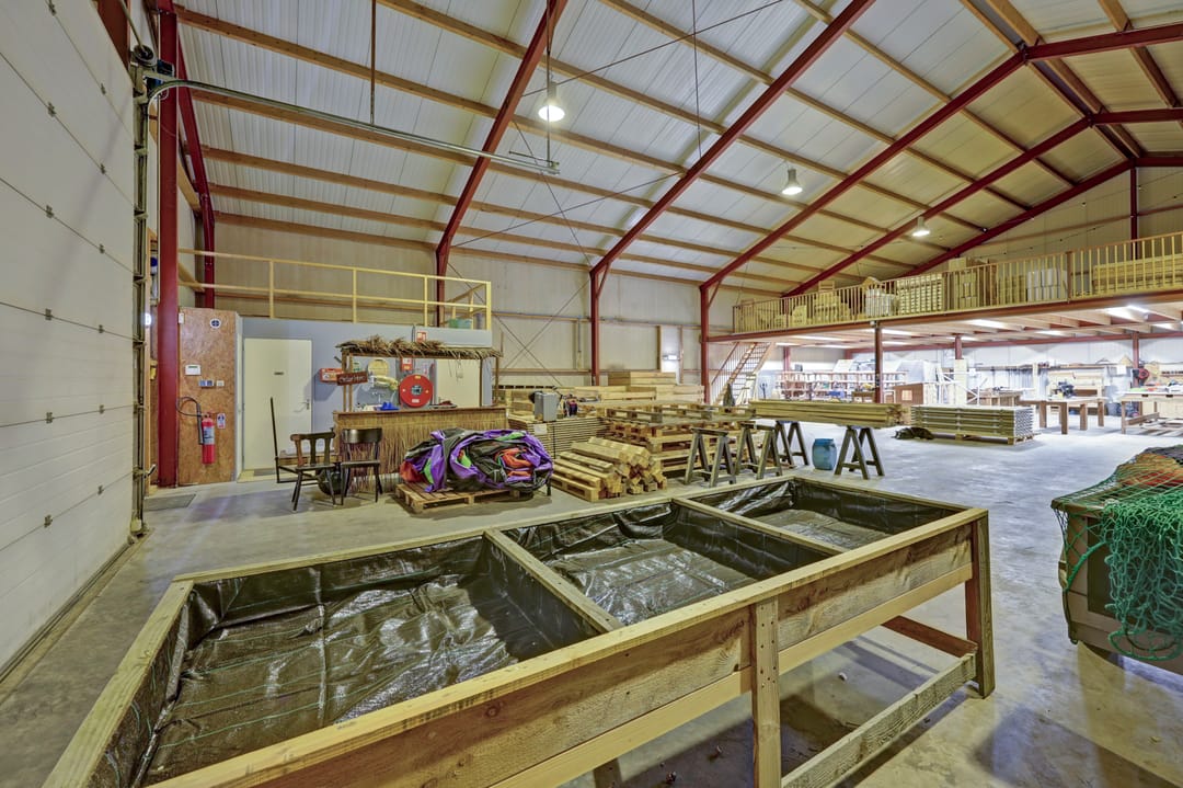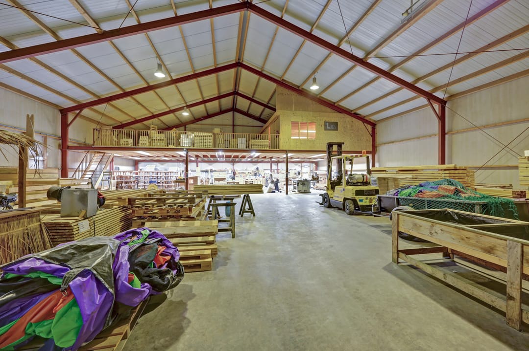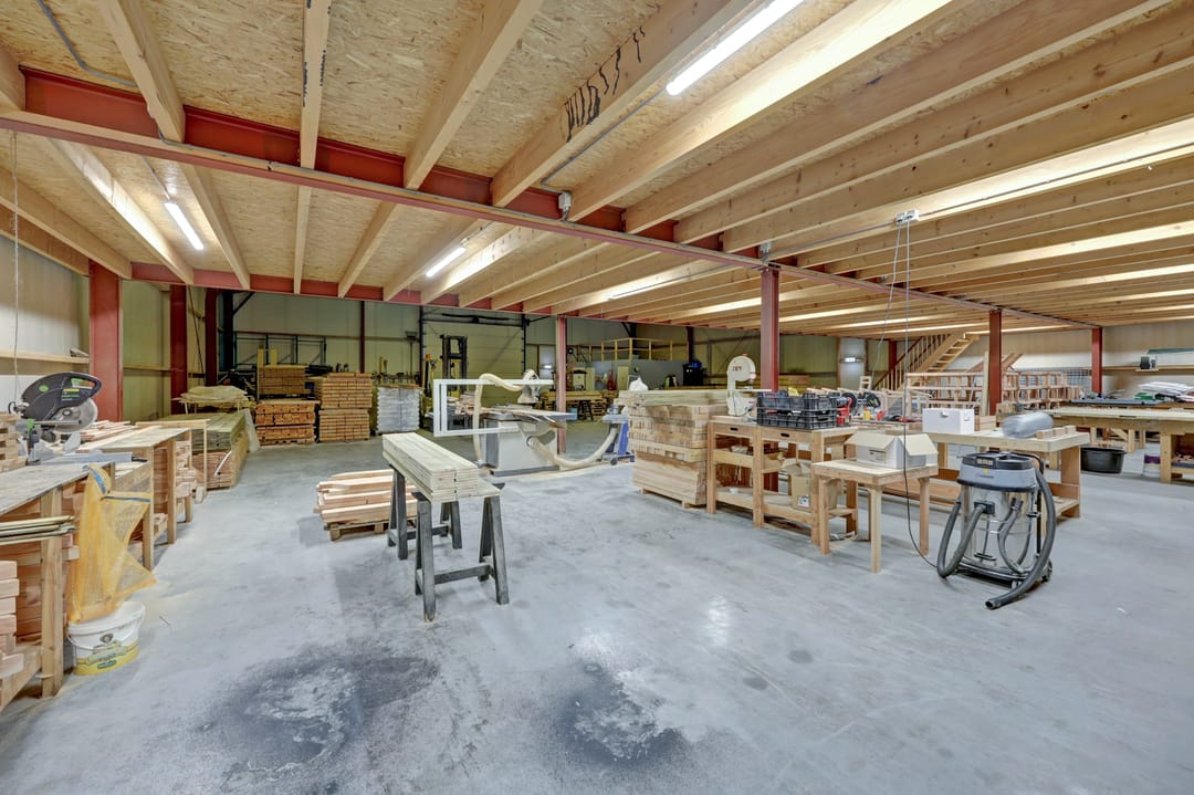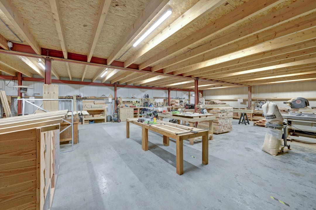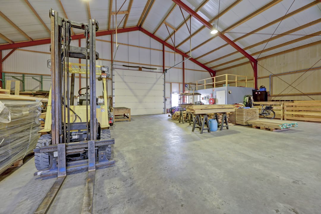 - Overhead doors, three-phase electric power, concrete floor, toilet and pantry