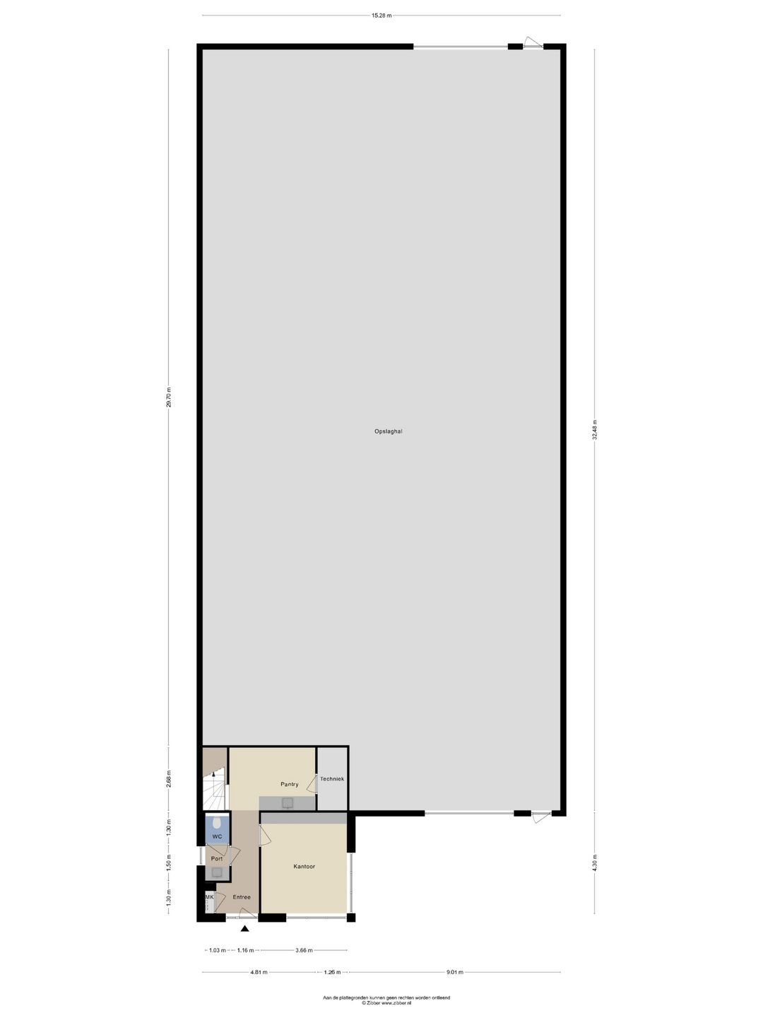De oppervlakten zijn gemeten door verhurend makelaar uit een kopie bouwtekening. Het opgegeven metrage is derhalve indicatief; er kunnen geen rechten aan worden ontleend noch kan er sprake zijn van enige verrekening achteraf.
